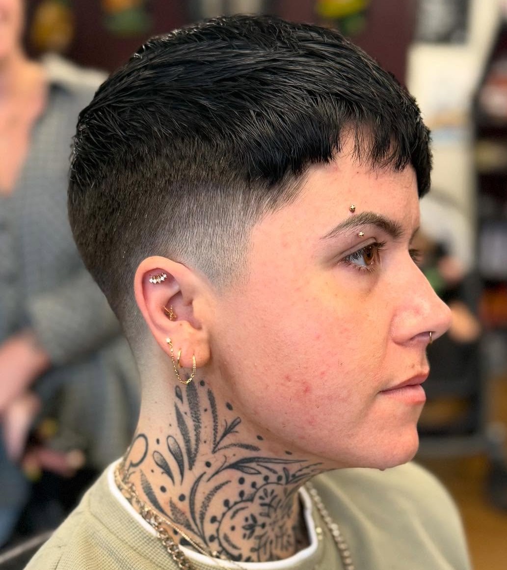 For a low-maintenance option, choose a pixie fade haircut with both sides faded and style it by brushing the front center of your hair to the back. This will give your hairstyle a cleaner look that won’t take lots of time in the morning to put together, so it’s a great option for those with a busy schedule.