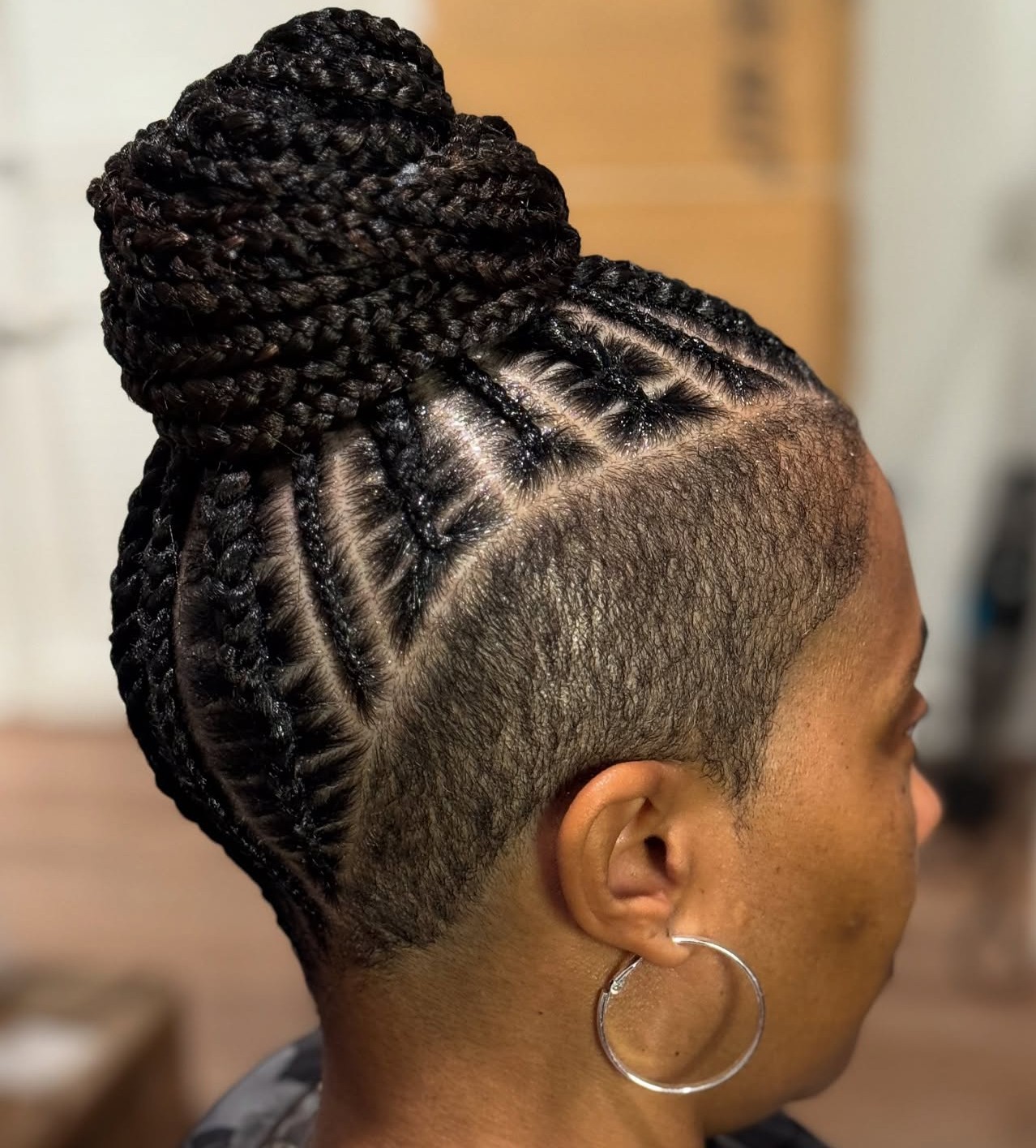 A geometric undercut pairs perfectly with hair swept up in pigtail buns or pulled in a high pony, resulting in more volume. Going for this or a similar undercut design will help you achieve a modern and artistic look that expresses your personality and style.