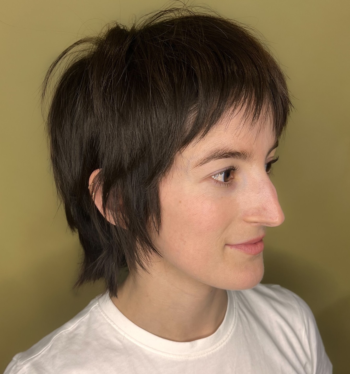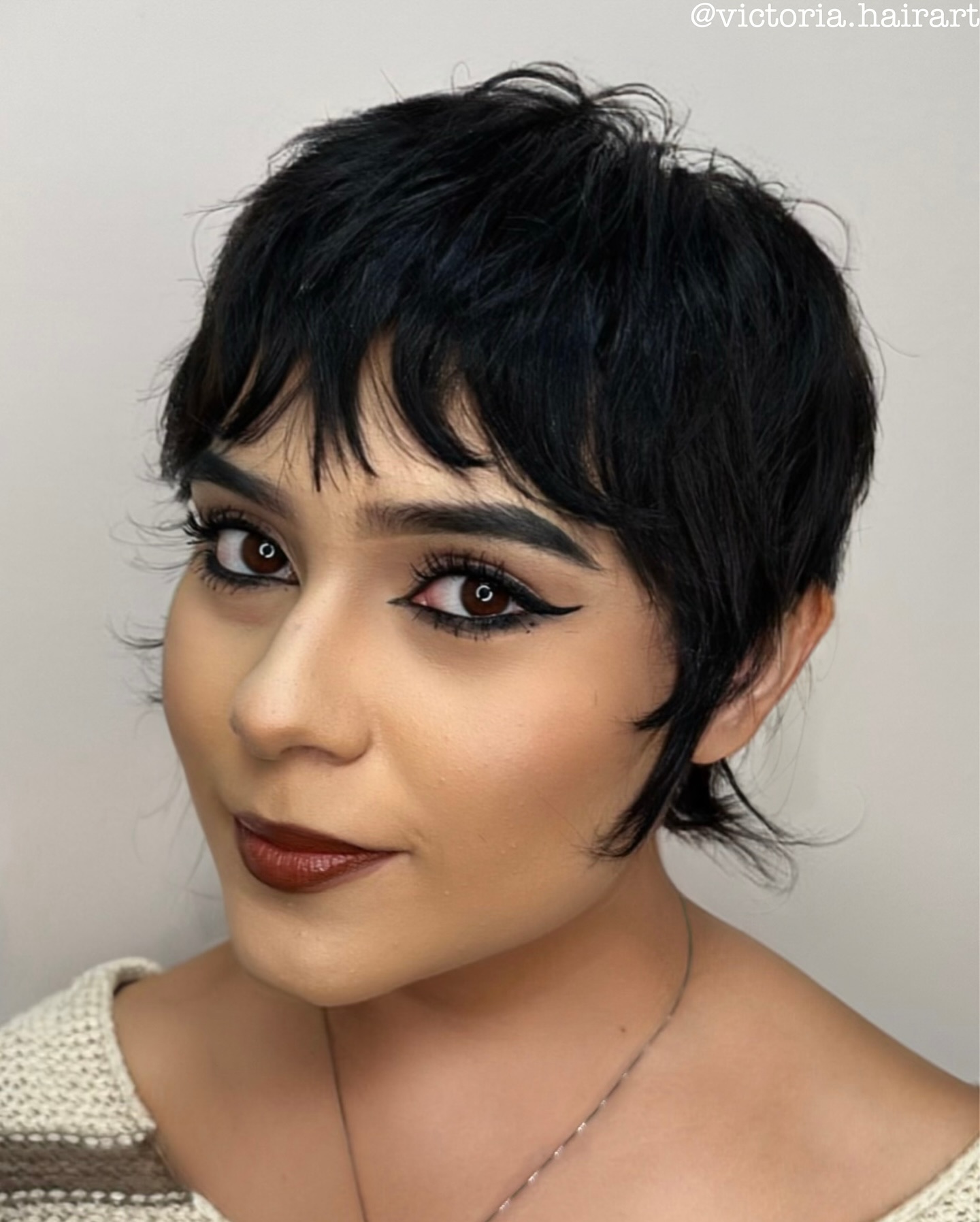 The undercut pixie has surged in popularity across all genders. If you have big eyes and a triangular or oval face, you can go for a bold undercut with a razored element and style bangs short to open up your forehead.
