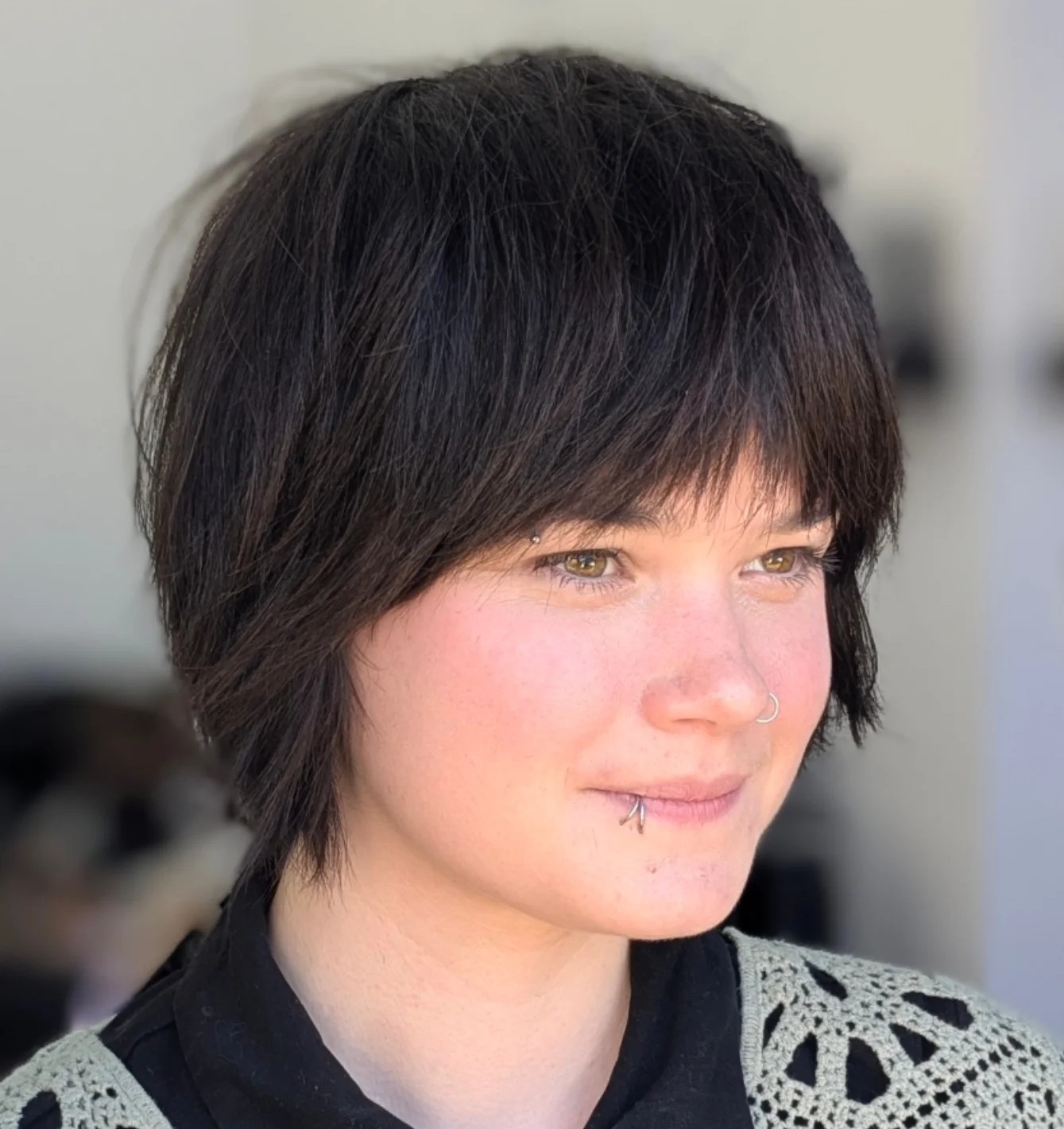 Having a short haircut with bangs does not mean you are stuck with one way to style your hair. Whether brushed forward for impact or swept aside for subtle charm, the look invites versatility. Feel free to experiment with different styling options to see what best suits you. Each variation can be tailored to highlight your unique aesthetic.