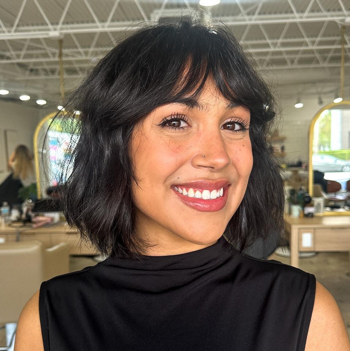 In 2025, many women have reinvented short hair with bangs, especially when it comes to the curly bob. The key is to make sure the bangs are of the right length and they blend in with the rest of the hairdo for a seamless look. Instead of fighting your natural hair texture, ask your stylist for a layered cut that will enhance it and help your locks appear more lightweight.