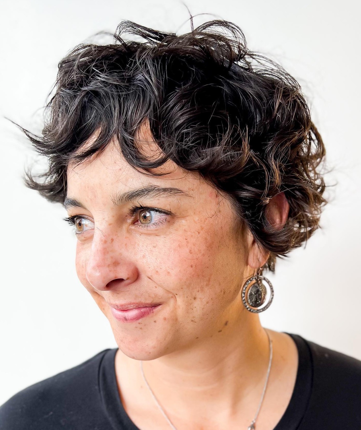 Short hair with bangs isn’t just for straight hair types! In fact, curly bangs are one of the top trends now. Tight curls with side bangs create a dynamic silhouette that can’t be ignored. This is a great style to try at least once if you have natural curls.