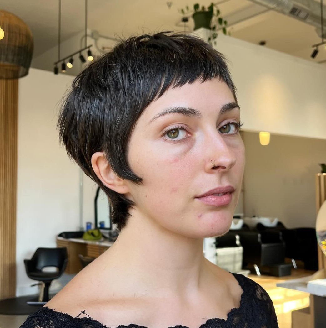 The undercut pixie has surged in popularity across all genders. If you have big eyes and a triangular or oval face, you can go for a bold undercut with a razored element and style bangs short to open up your forehead.