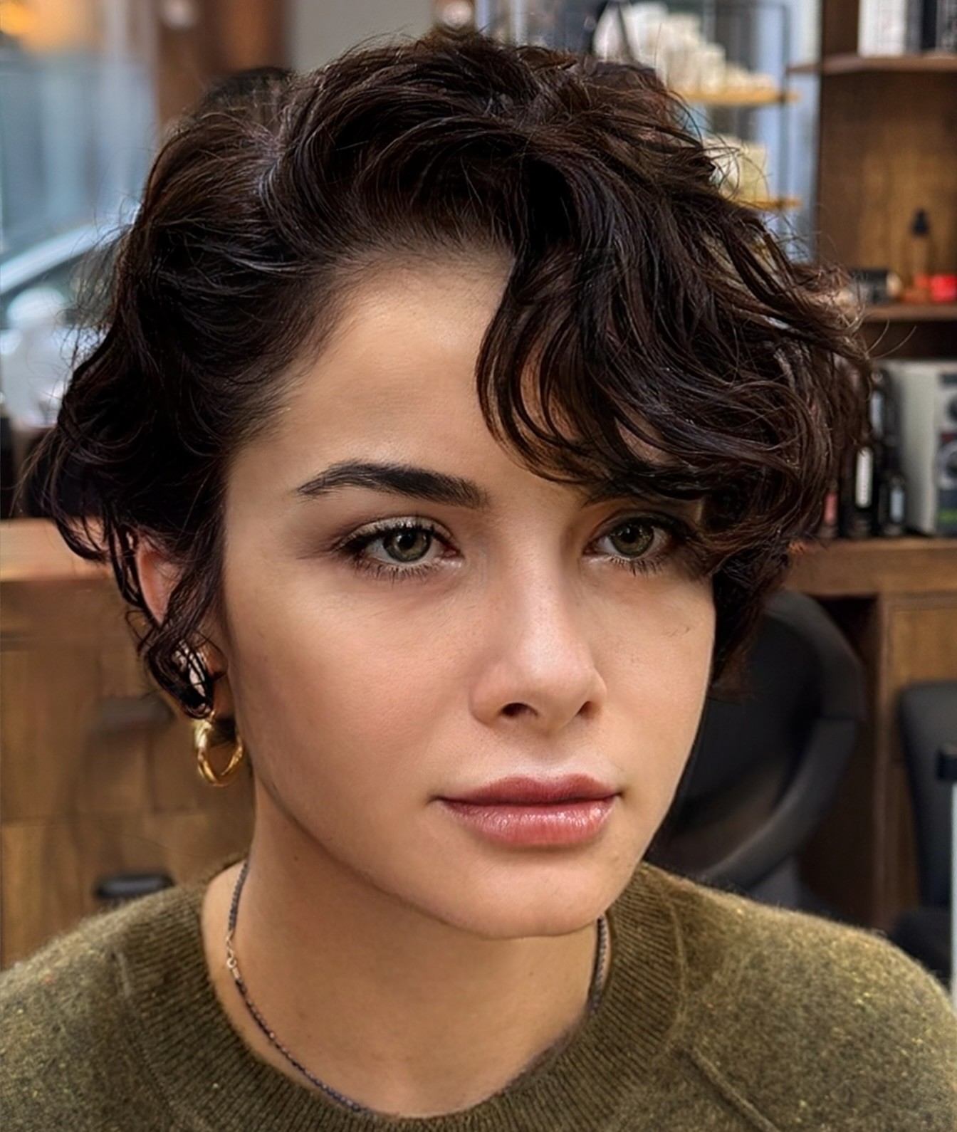 Short hair with bangs isn’t just for straight hair types! In fact, curly bangs are one of the top trends now. Tight curls with side bangs create a dynamic silhouette that can’t be ignored. This is a great style to try at least once if you have natural curls.
