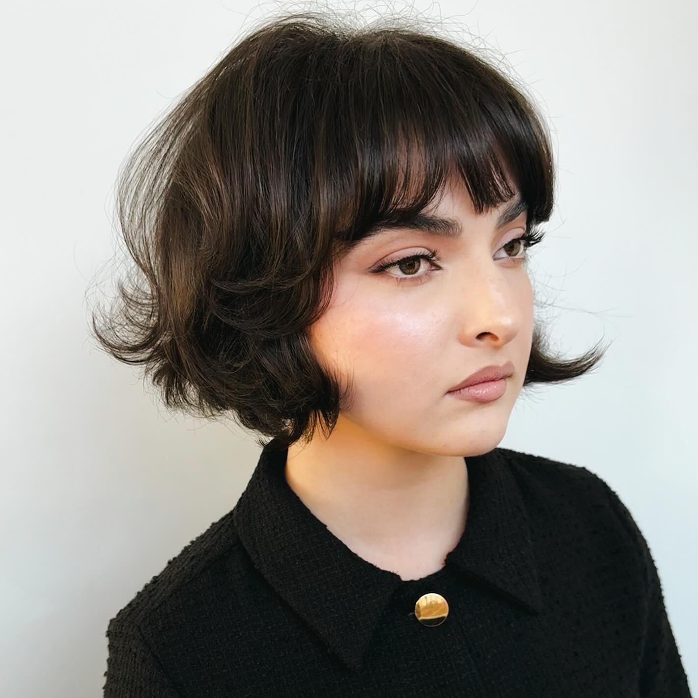 In 2025, many women have reinvented short hair with bangs, especially when it comes to the curly bob. The key is to make sure the bangs are of the right length and they blend in with the rest of the hairdo for a seamless look. Instead of fighting your natural hair texture, ask your stylist for a layered cut that will enhance it and help your locks appear more lightweight.