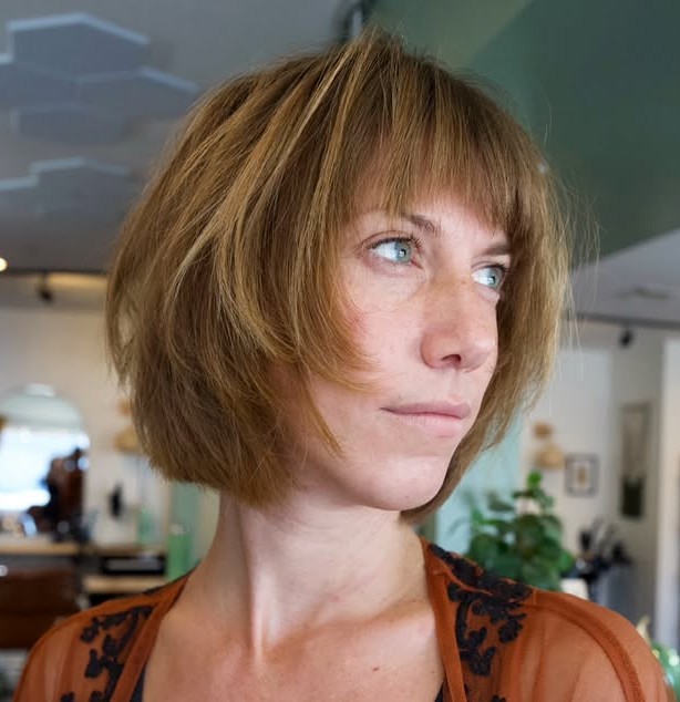 Bangs tend to grow out quickly, giving you perfect freedom to experiment with their shape and thickness whenever you like. These cute choppy bangs are the ultimate attention-grabbers that pair so well with the classic bob.