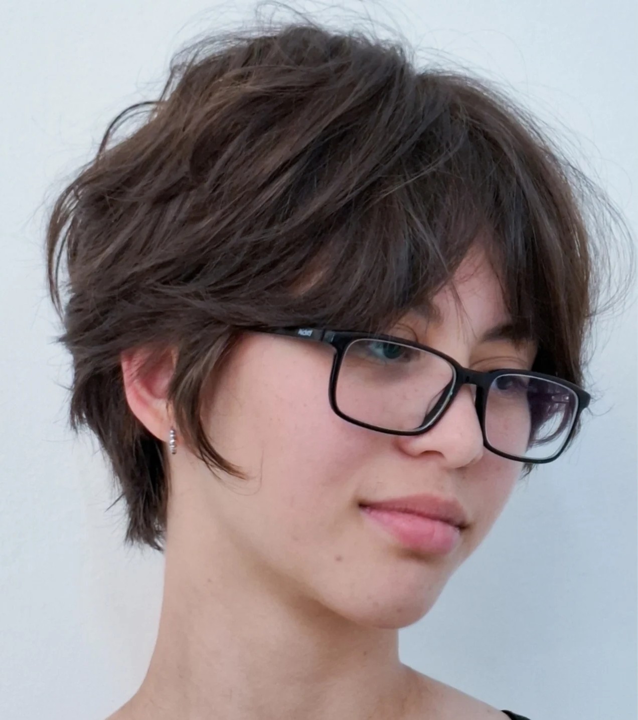 For those who prefer shorter lengths, a long pixie hairstyle with a choppy finish is a great option. Try mixing it with blonde highlights to add definition to the style. Bangs work well with this length too, just style them slightly to the side for the best effect.