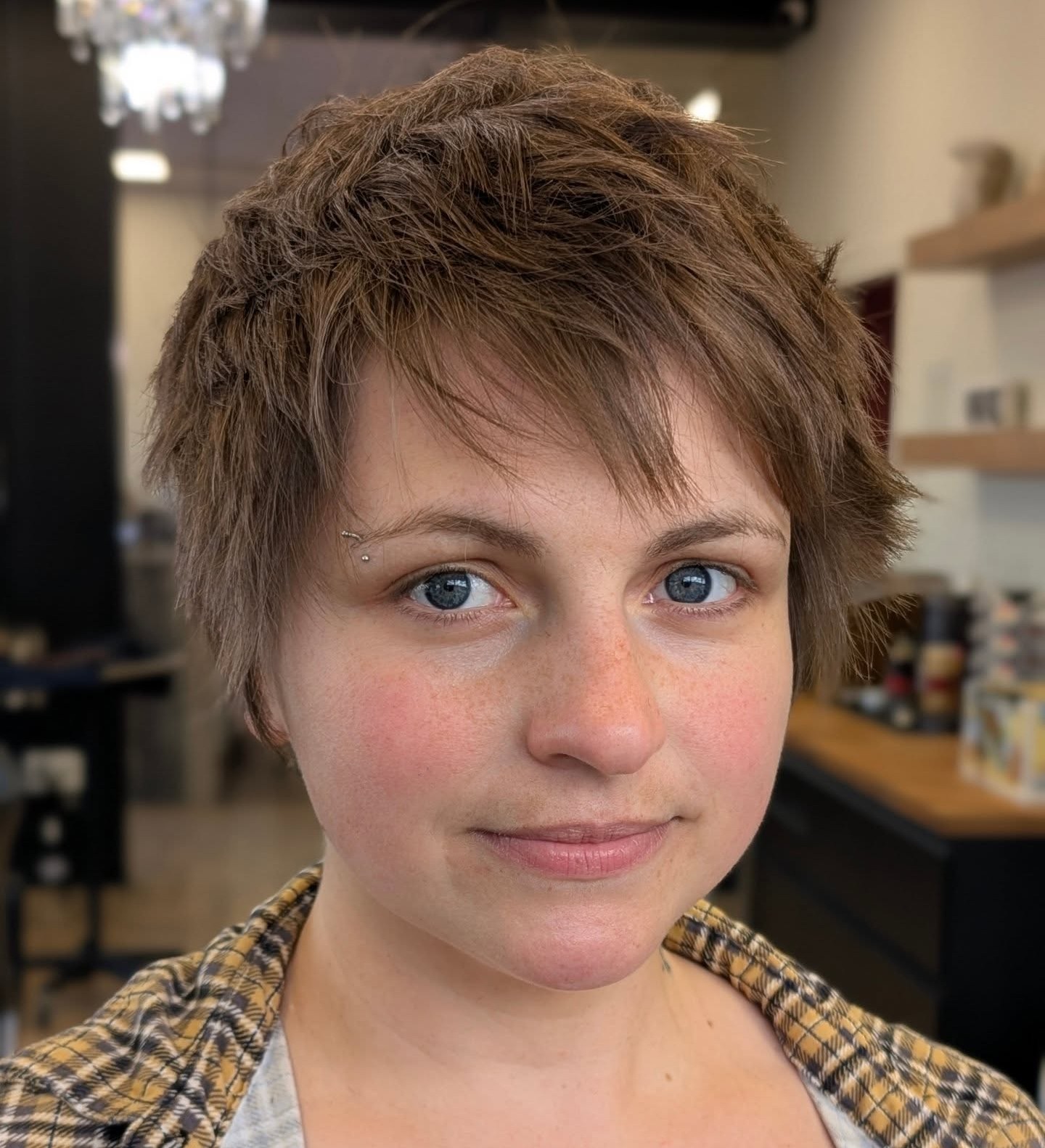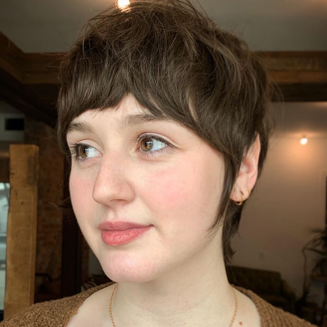 The undercut pixie has surged in popularity across all genders. If you have big eyes and a triangular or oval face, you can go for a bold undercut with a razored element and style bangs short to open up your forehead.