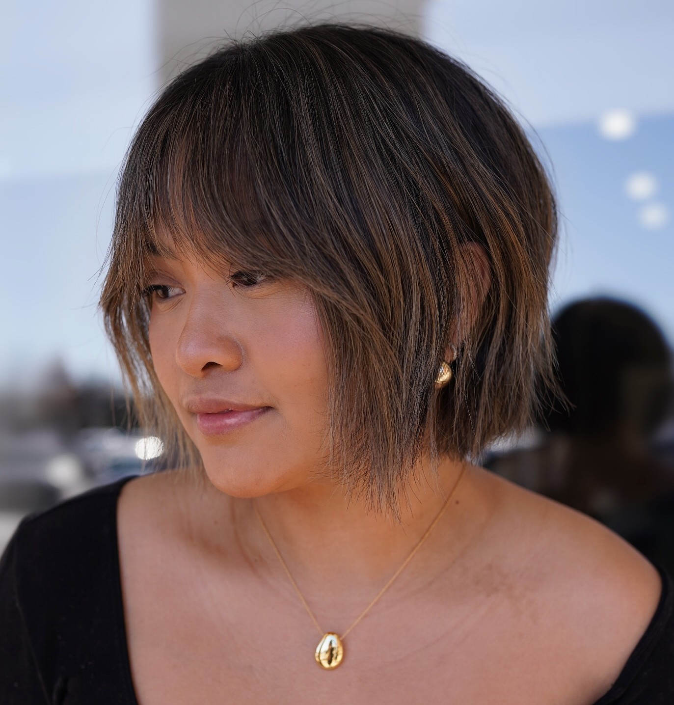 In 2025, many women have reinvented short hair with bangs, especially when it comes to the curly bob. The key is to make sure the bangs are of the right length and they blend in with the rest of the hairdo for a seamless look. Instead of fighting your natural hair texture, ask your stylist for a layered cut that will enhance it and help your locks appear more lightweight.
