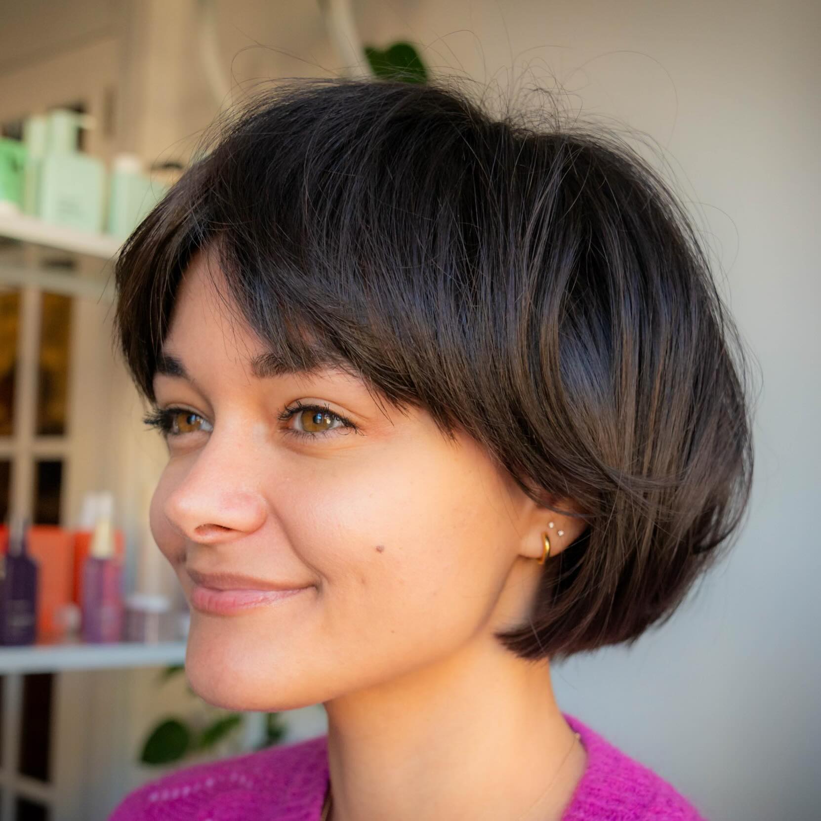 A short blunt bob is a global favorite, thanks to its striking look and easy upkeep. In addition, it’s incredibly versatile – by experimenting with different types of bangs, you can dramatically change your look.