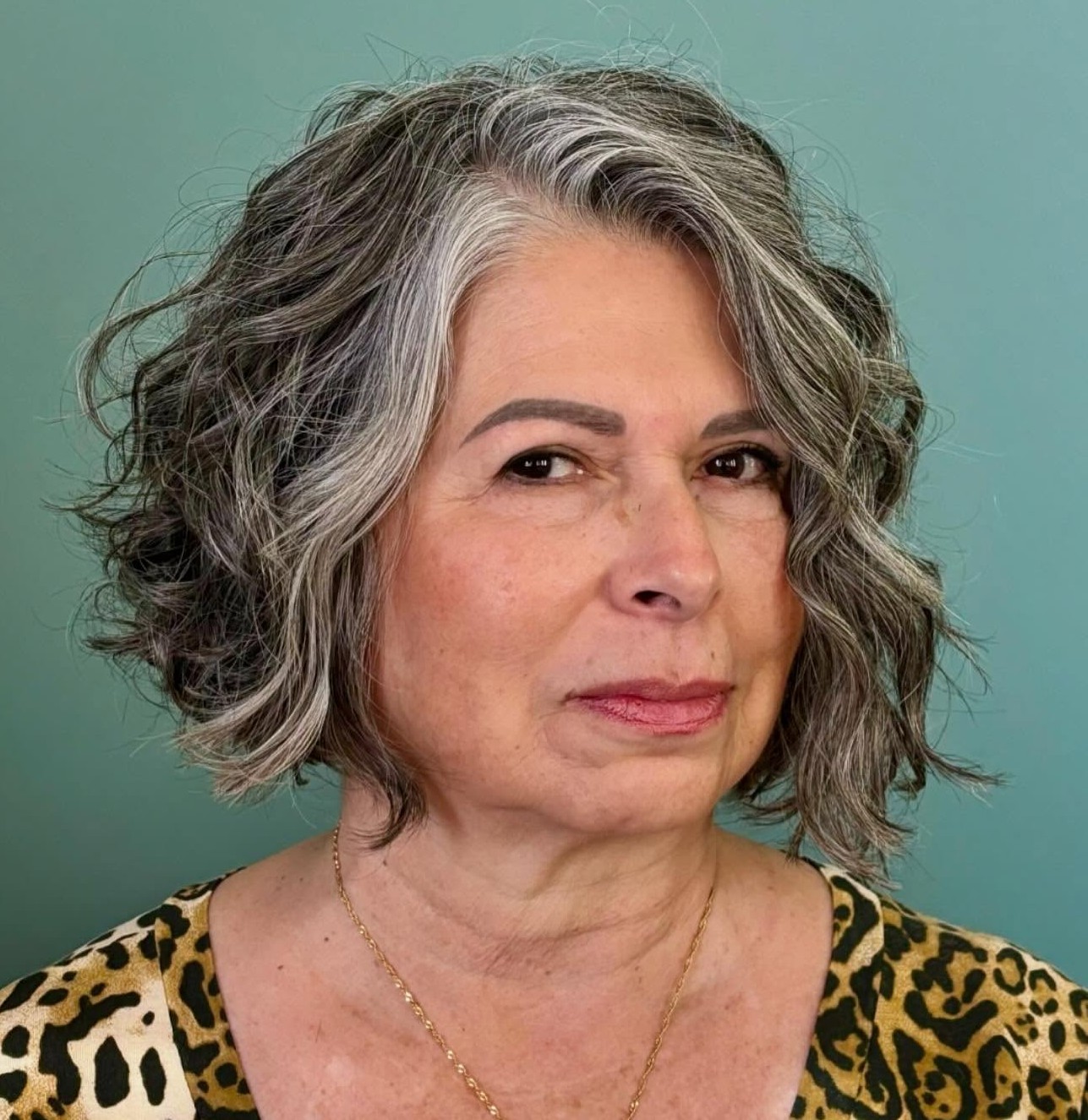 Use big rollers to help tame the texture of your curls and gain a little extra control over the frizz. This conservative cut still has a lot of personality, particularly if you choose a color a couple of shades lighter than your eyebrows. Add some highlights or a balayage, and you’ll have a style you can call all your own.