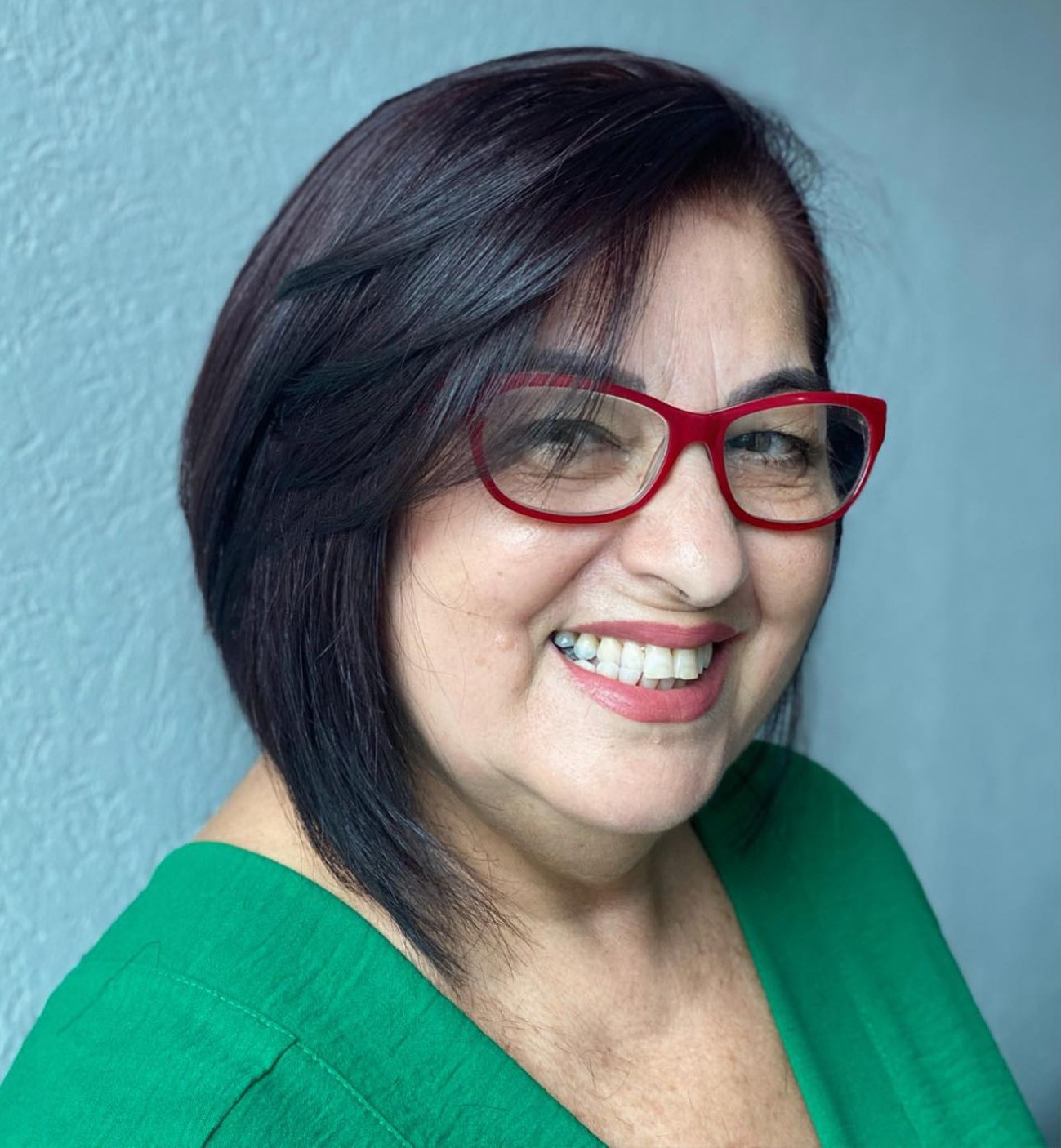 When choosing hairstyles for women over 50 with round faces, it’s important to look for cuts that help elongate the face. A symmetrical bob with textured bangs gives off a youthful vibe, making you look friendly and approachable. The vibrant rusty-auburn color is attractive for most skin tones.