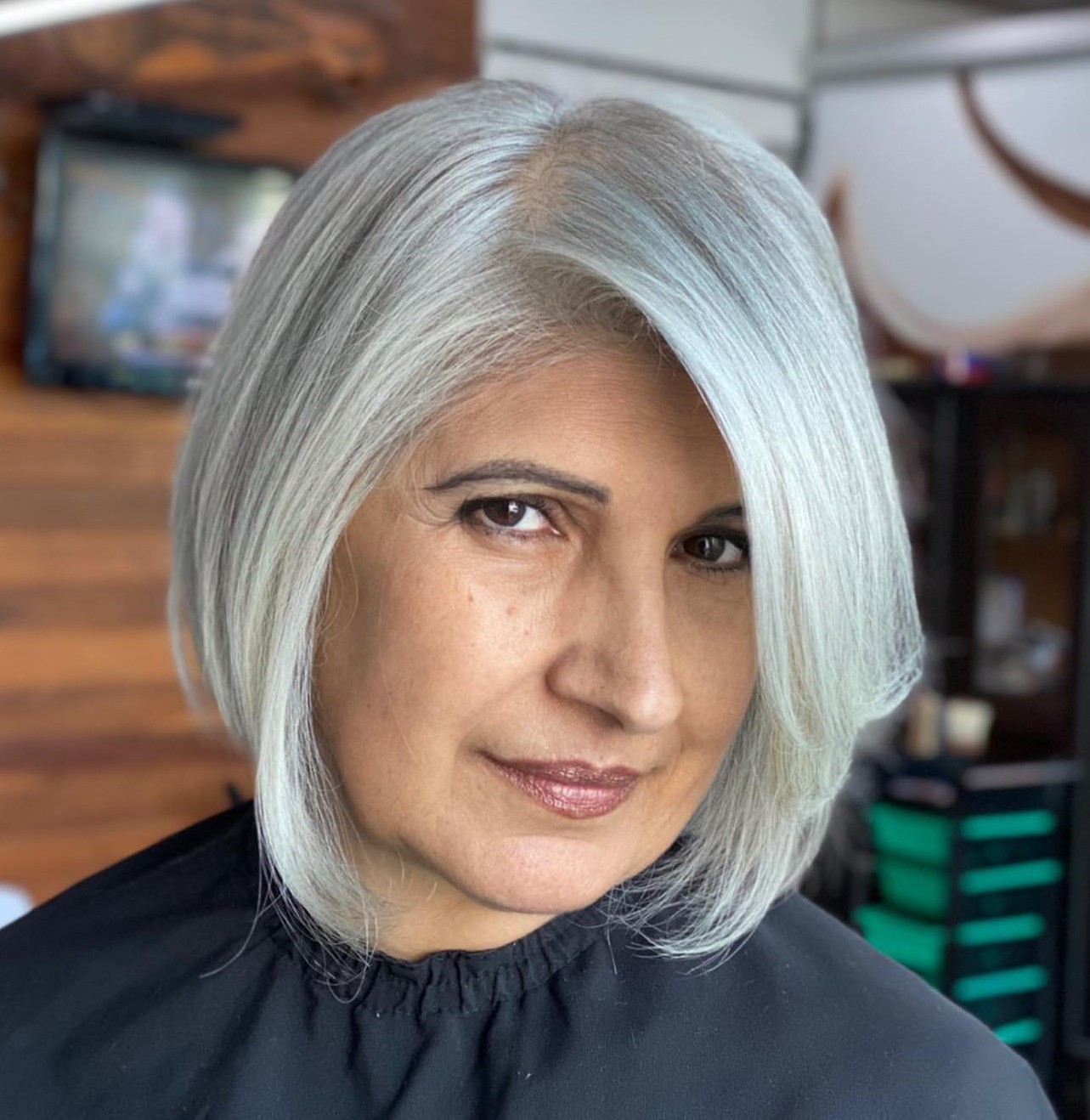 If you enjoy staying abreast of the latest haircuts and styling trends, you already know that classic A-line bobs never go out of fashion. The sharp angle of the cut perfectly camouflages heavy jowls, and the subtle copper highlights help to lengthen the face.