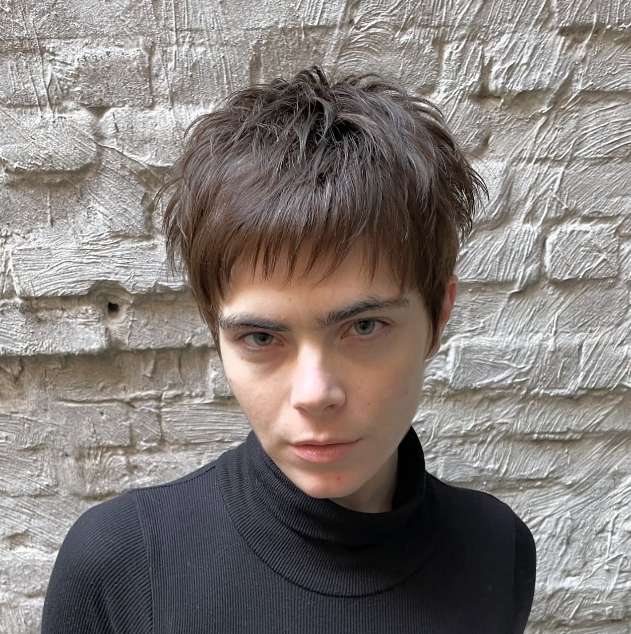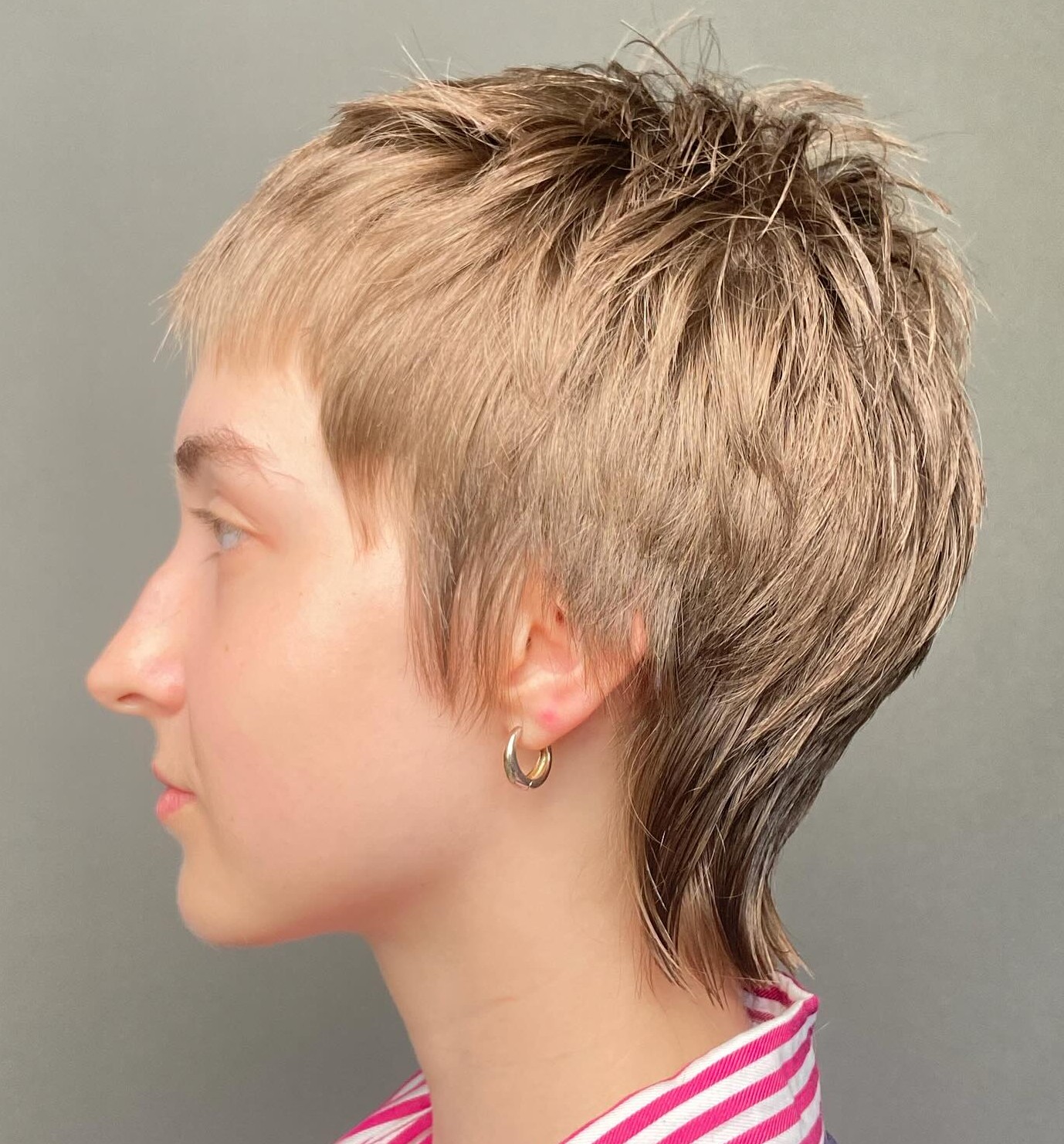 Extra short styles usually do their own thing – just let the hair stand up naturally. But if you add a touch of gel and a splash of water, you can shape a spiky look even with the tiniest bit of length. It’s super easy to maintain and creates a one-of-a-kind look.