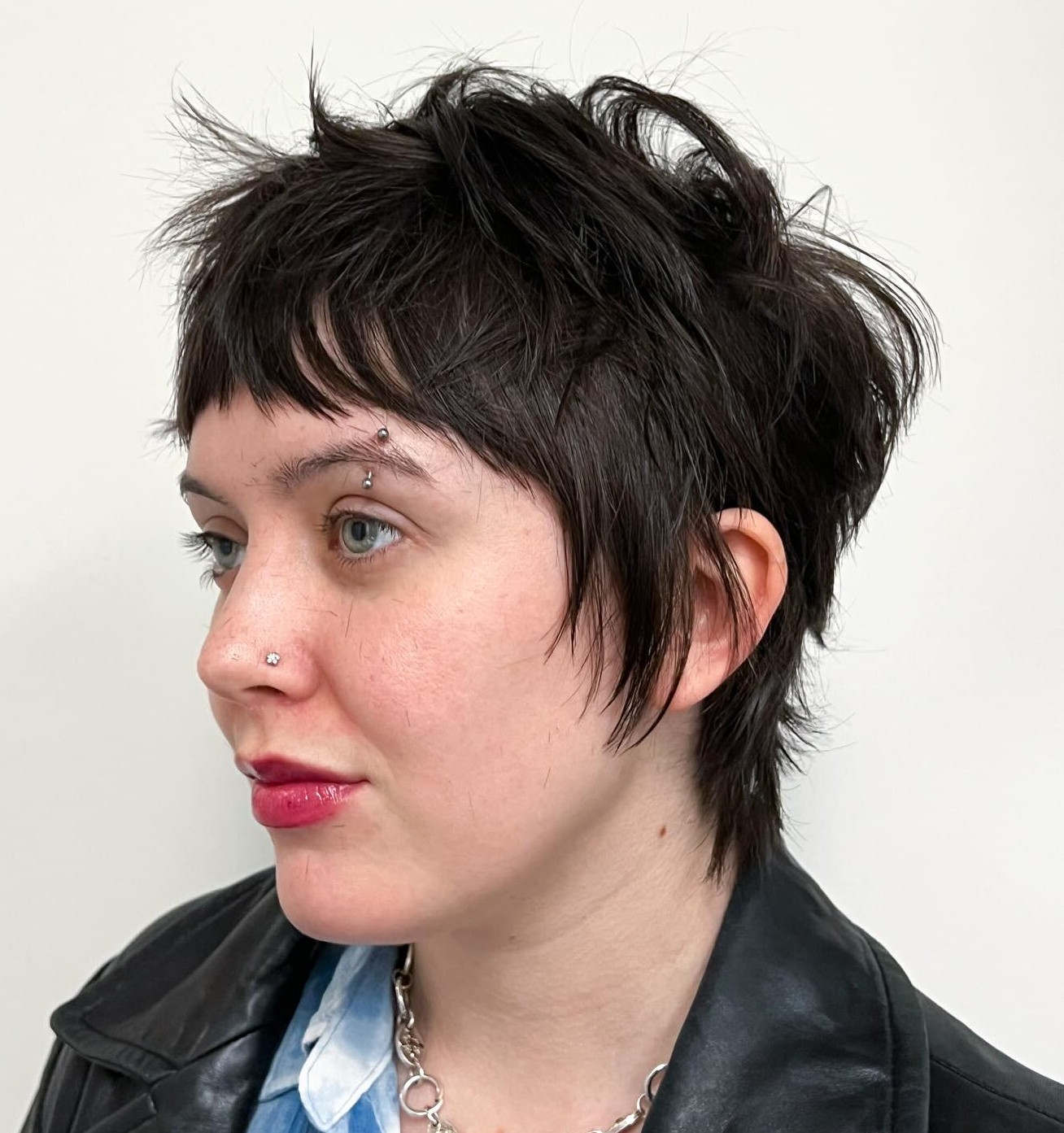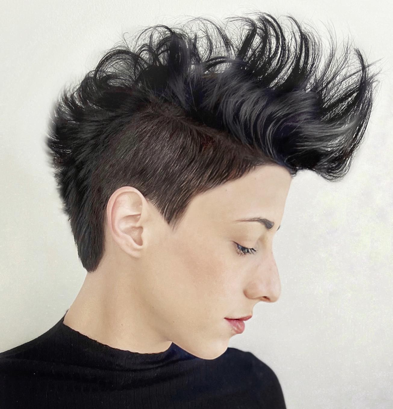 At first glance, you might feel as if you’re the only female member of an ’80s punk band, but trust us when we say you’ll quickly love and embrace this simple style. Hair is kept long enough to be spiked upward and out, and when you pair it with a quality gel or holding spray, your look will last all day.