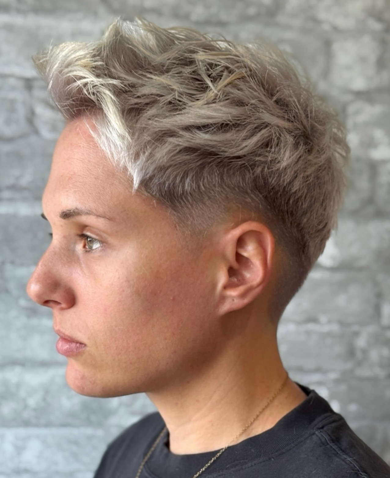 A dated cut will add years, so it’s worth choosing a cut that feels current and tailored to you. This short spiky haircut hits a sweet spot with just enough volume and messiness to be on trend without being too over the top.