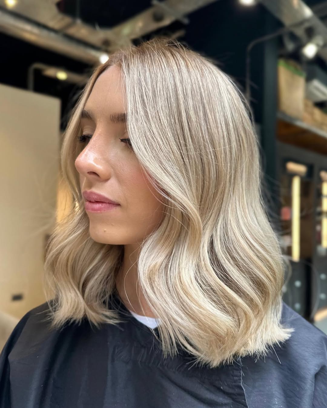 Pairing blonde hair with a medium-length cut, whether in a shaggy or lobbed style with face-framing elements, adds an element of ease to the overall look. The mid-length cut strikes a balance between style and manageability, minimizing the risk of excessive breakage while still delivering a chic and effortless appearance.