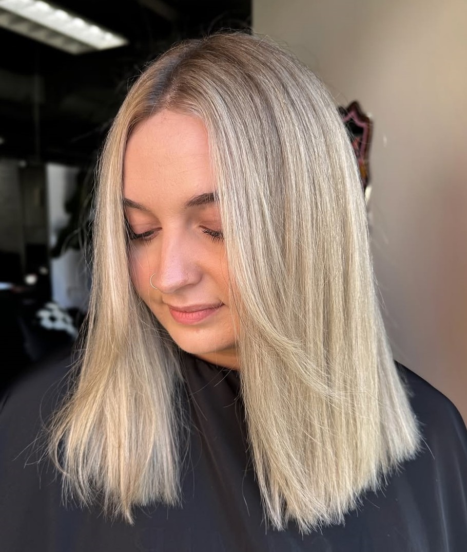 Pairing blonde hair with a medium-length cut, whether in a shaggy or lobbed style with face-framing elements, adds an element of ease to the overall look. The mid-length cut strikes a balance between style and manageability, minimizing the risk of excessive breakage while still delivering a chic and effortless appearance.