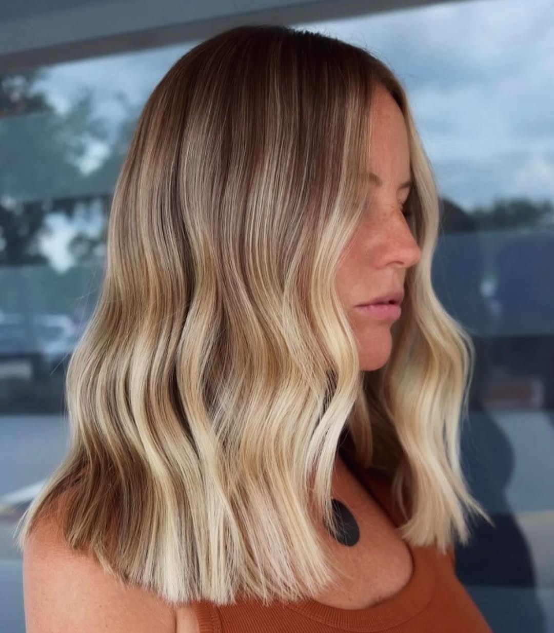 Pairing blonde hair with a medium-length cut, whether in a shaggy or lobbed style with face-framing elements, adds an element of ease to the overall look. The mid-length cut strikes a balance between style and manageability, minimizing the risk of excessive breakage while still delivering a chic and effortless appearance.