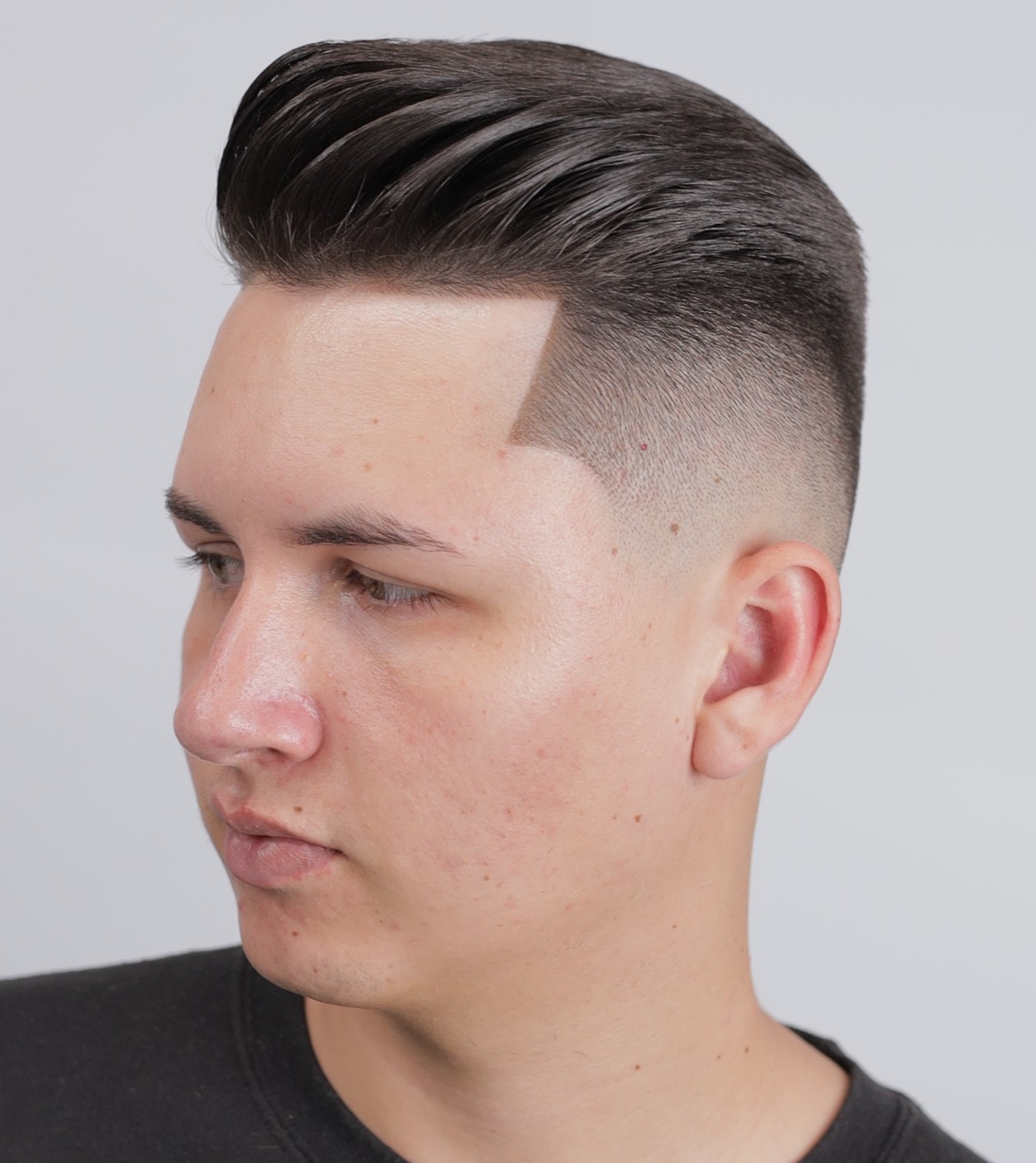 This daring combination of a slicked pompadour with a skin fade leads to a perfect blend of modern style and timeless coolness. The hairstyle that can easily take you from the office to a party with your friends.