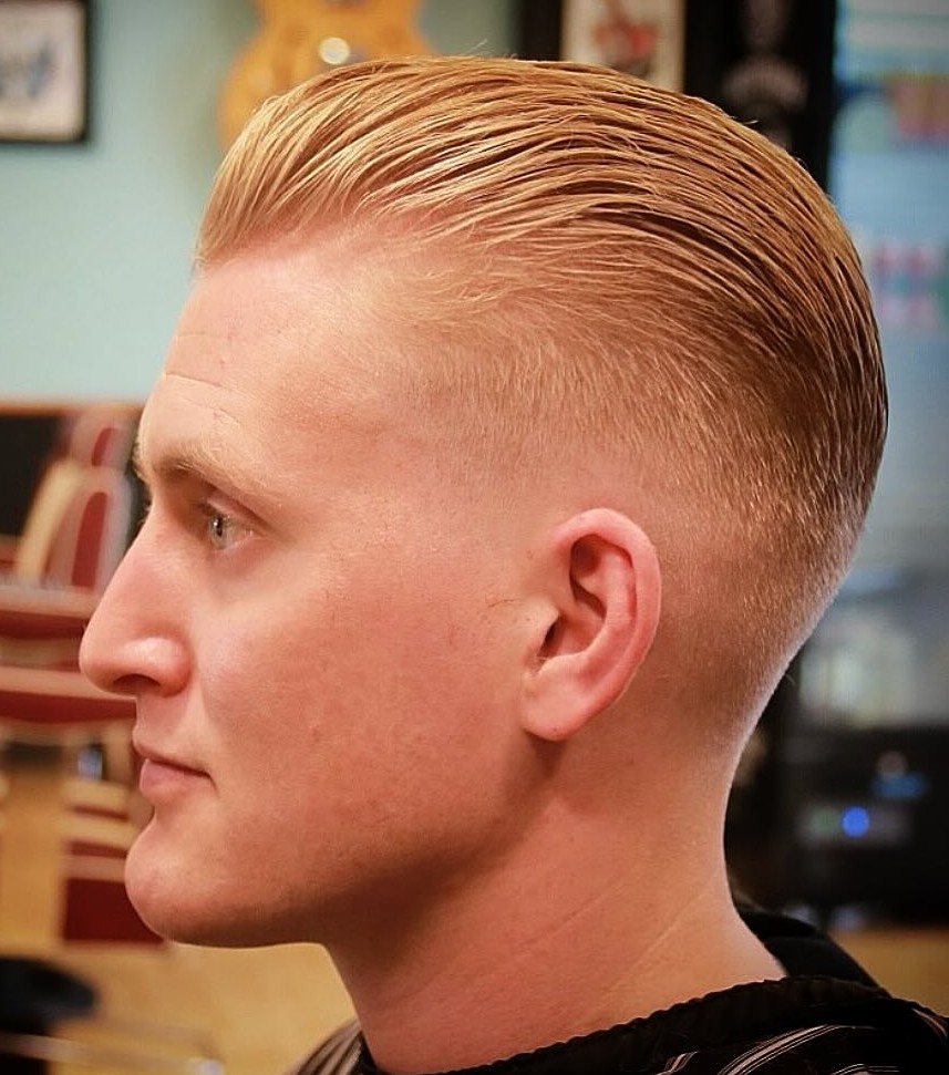 The slick back with a fade is like a contemporary twist on a timeless classic. The versatility of fade allows you to go from mid-taper haircut to skin fade, so you can effortlessly adjust the length of the sides.