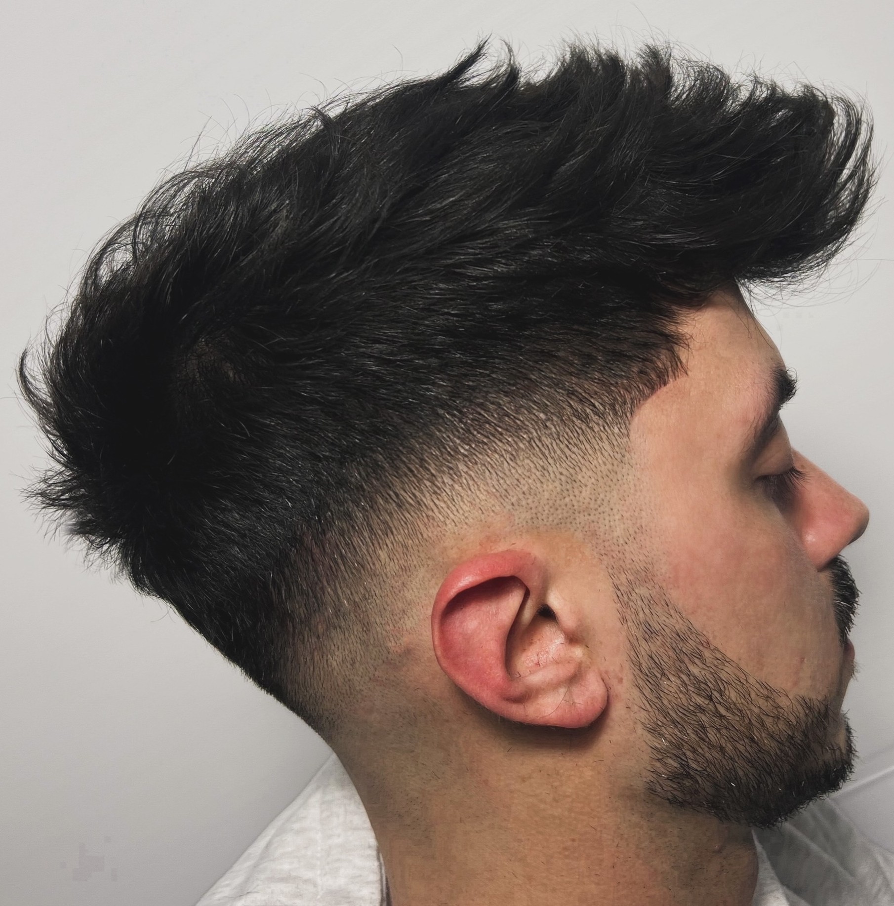 This style is for those who have hair and know the latest ways to wear it! With a medium length on the sides, burst fade around the ears and longer top, pushing forward to the upward flip, one must have patience and dedication with this style. But the results speak for themselves.