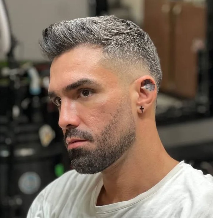 This style is for those who have hair and know the latest ways to wear it! With a medium length on the sides, burst fade around the ears and longer top, pushing forward to the upward flip, one must have patience and dedication with this style. But the results speak for themselves.