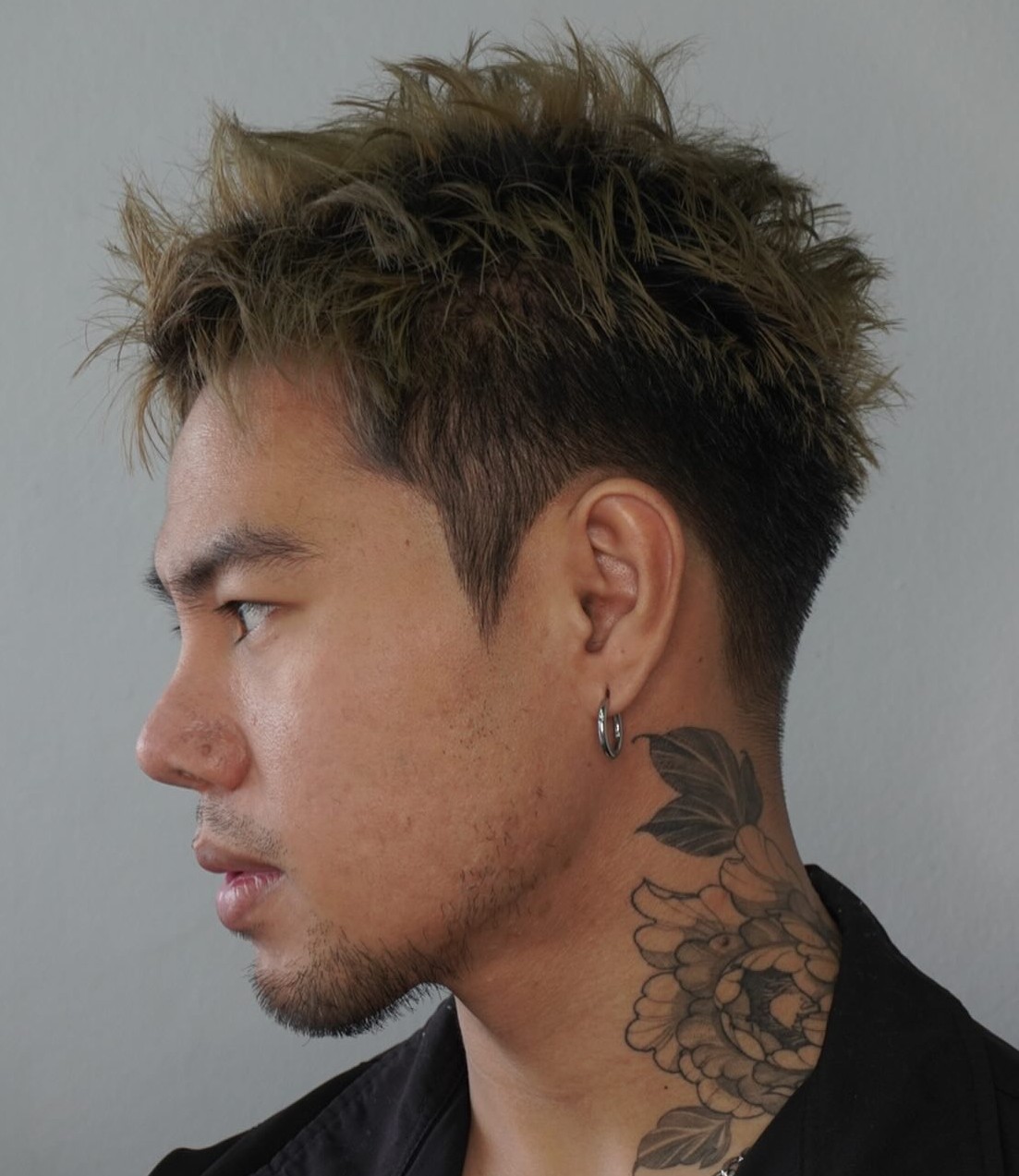 What’s great about this haircut is its simplicity and neat look. If you don’t like the spiky top, you can always go shorter without having to disrupt your entire cut. The front spiked hair is longer and strategically tapered to blend with the buzzed sides and back.