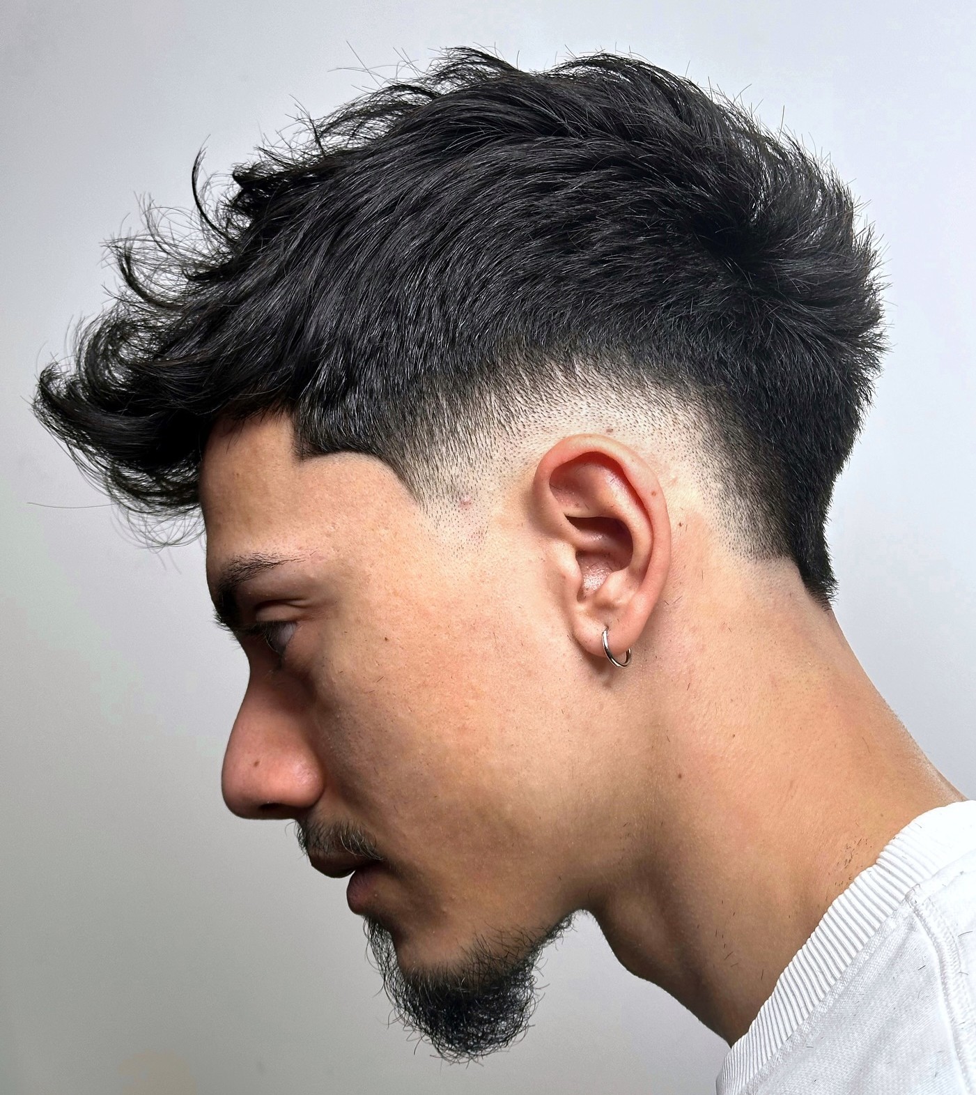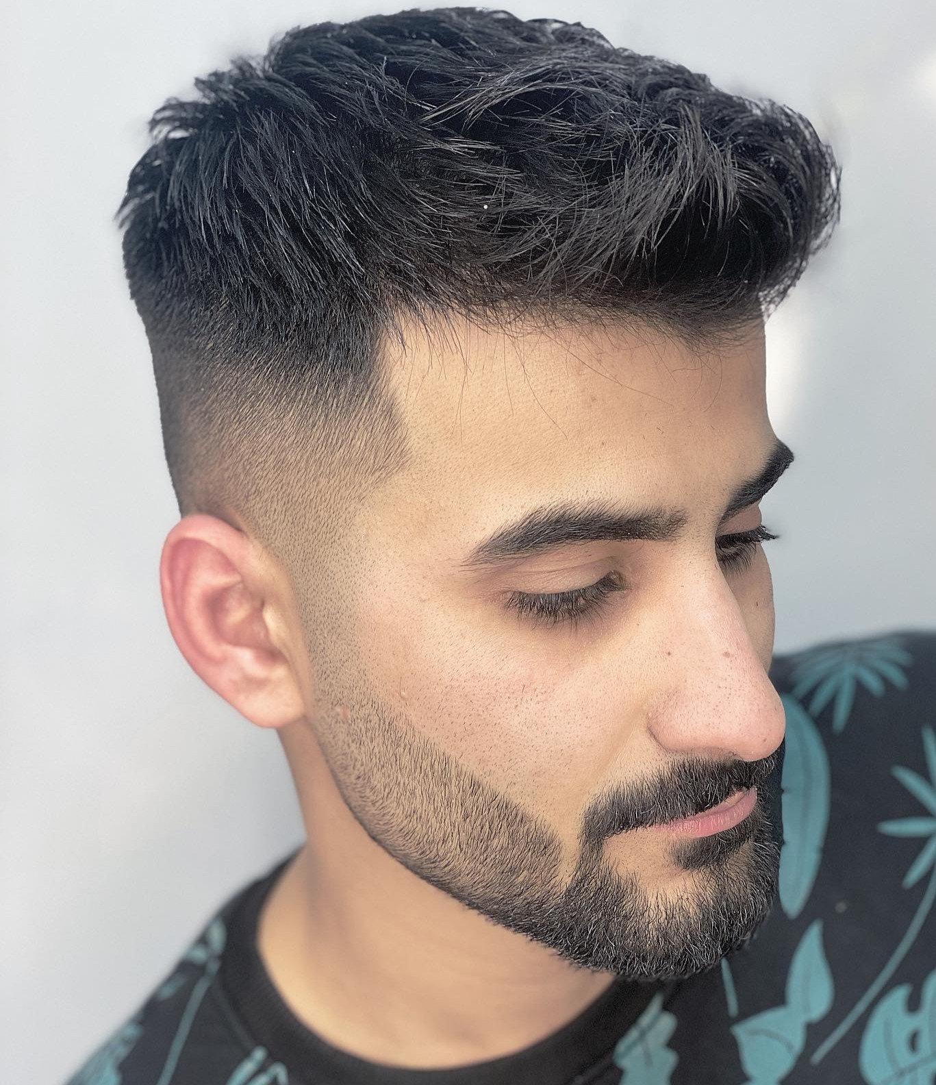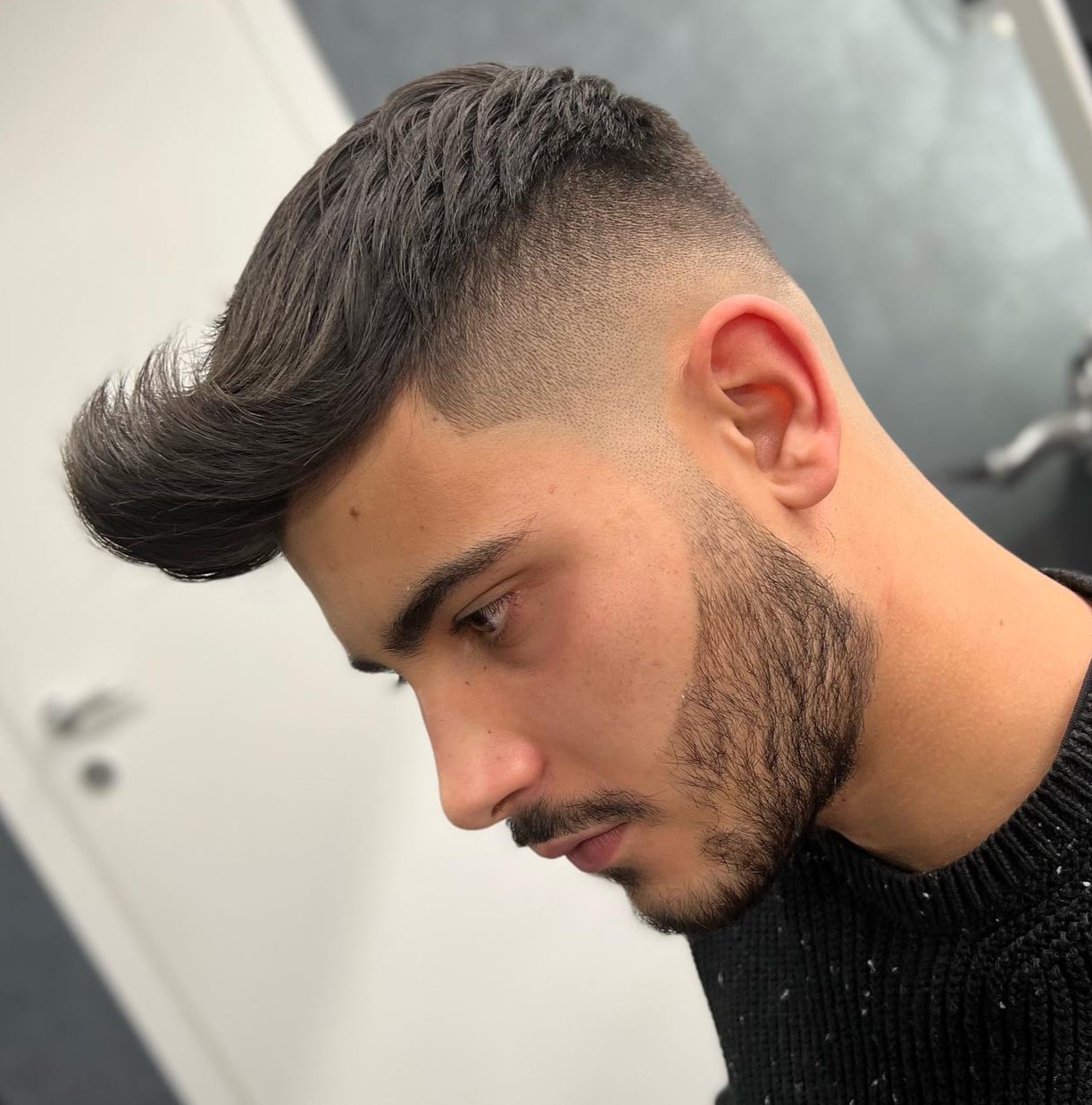This style is for those who have hair and know the latest ways to wear it! With a medium length on the sides, burst fade around the ears and longer top, pushing forward to the upward flip, one must have patience and dedication with this style. But the results speak for themselves.