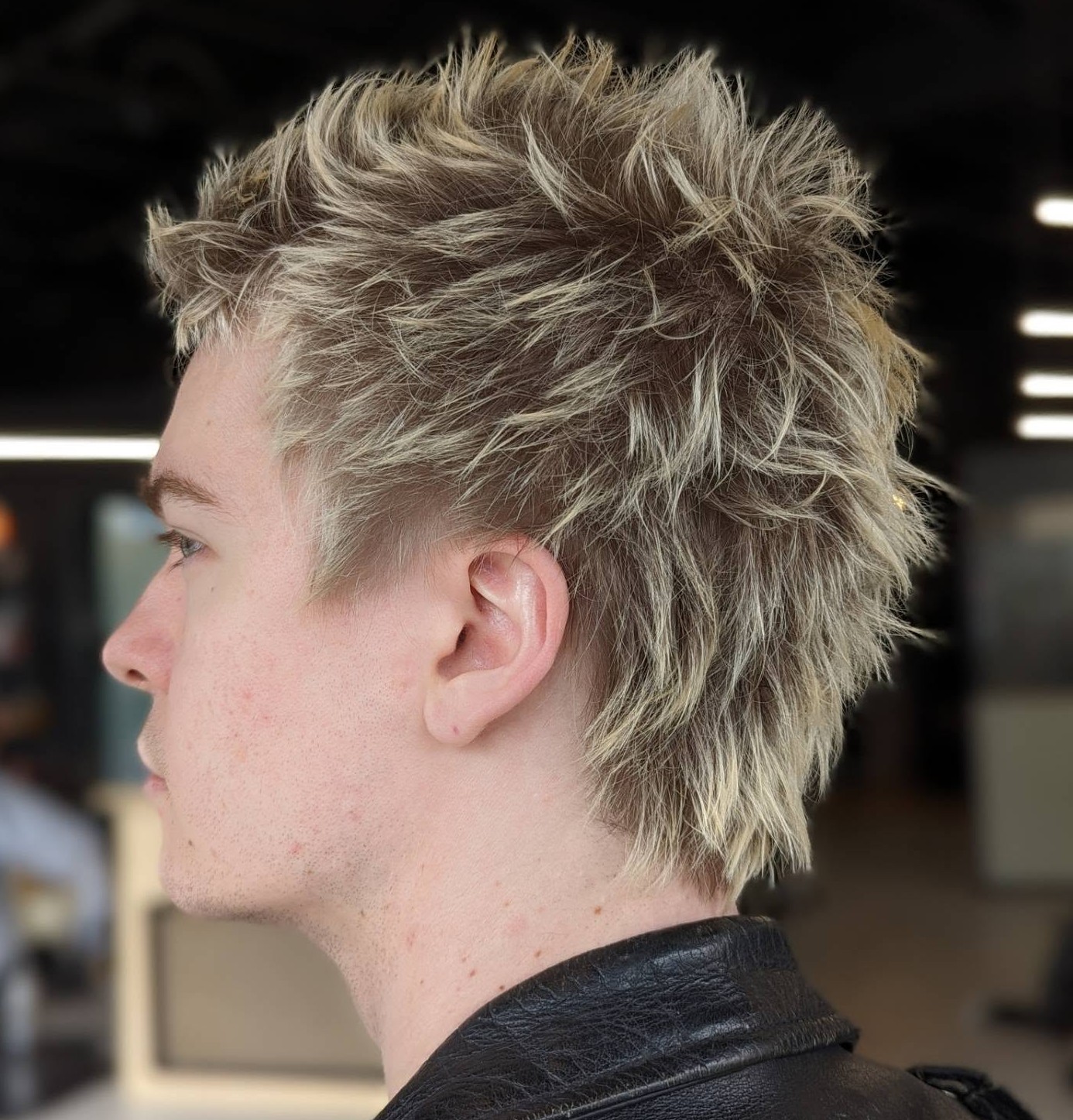 The attention to strands of color is what this image displays. Applying a strong hold product allows for the dimension of the highlighted strands to shine through, while the spikes remain elevated and perfectly defined at the tips. With the sides and back shaved shorter, this look lifts men’s spiky hairstyles to the stylish levels they have never been before.