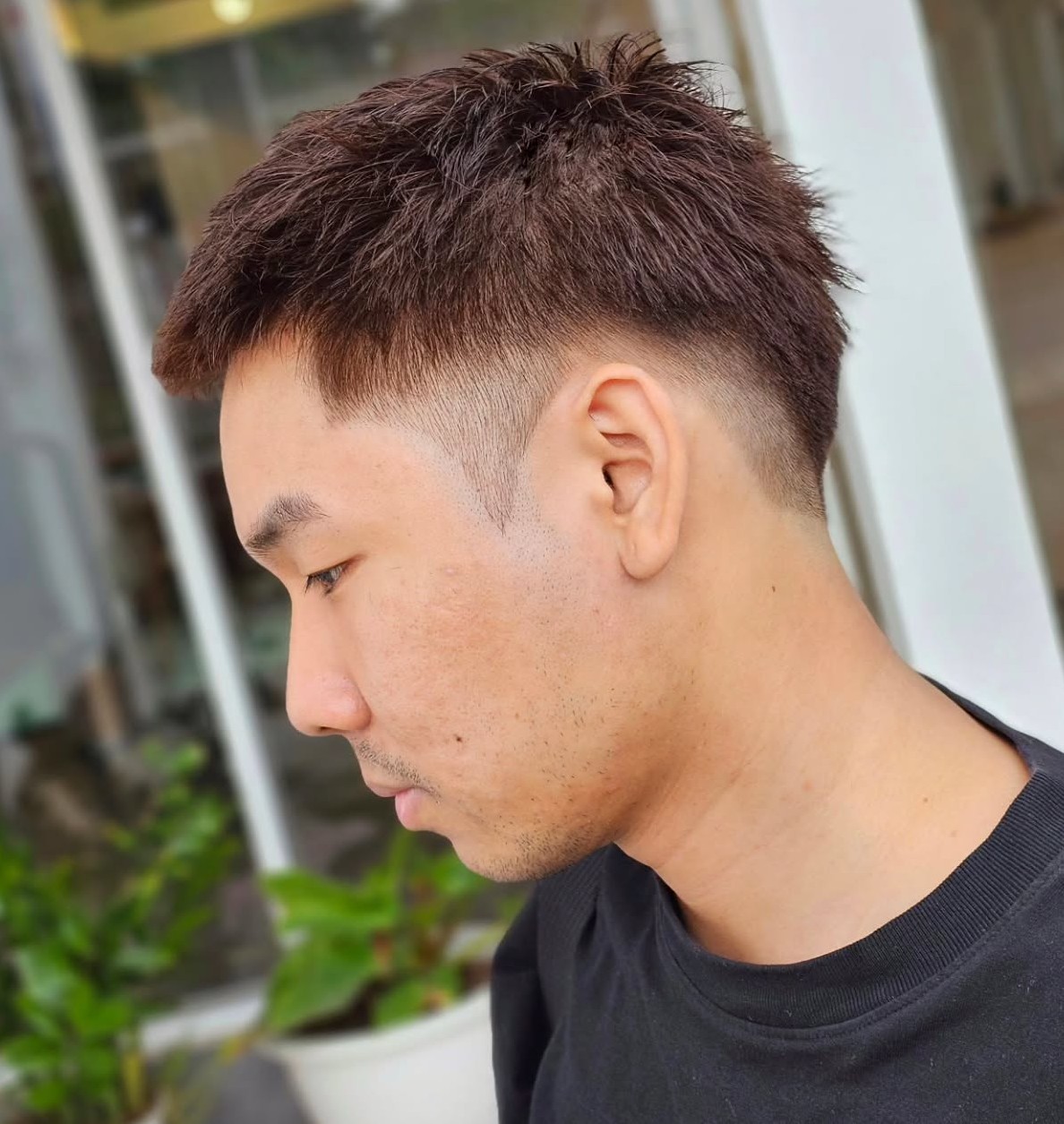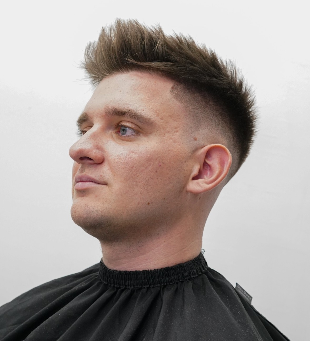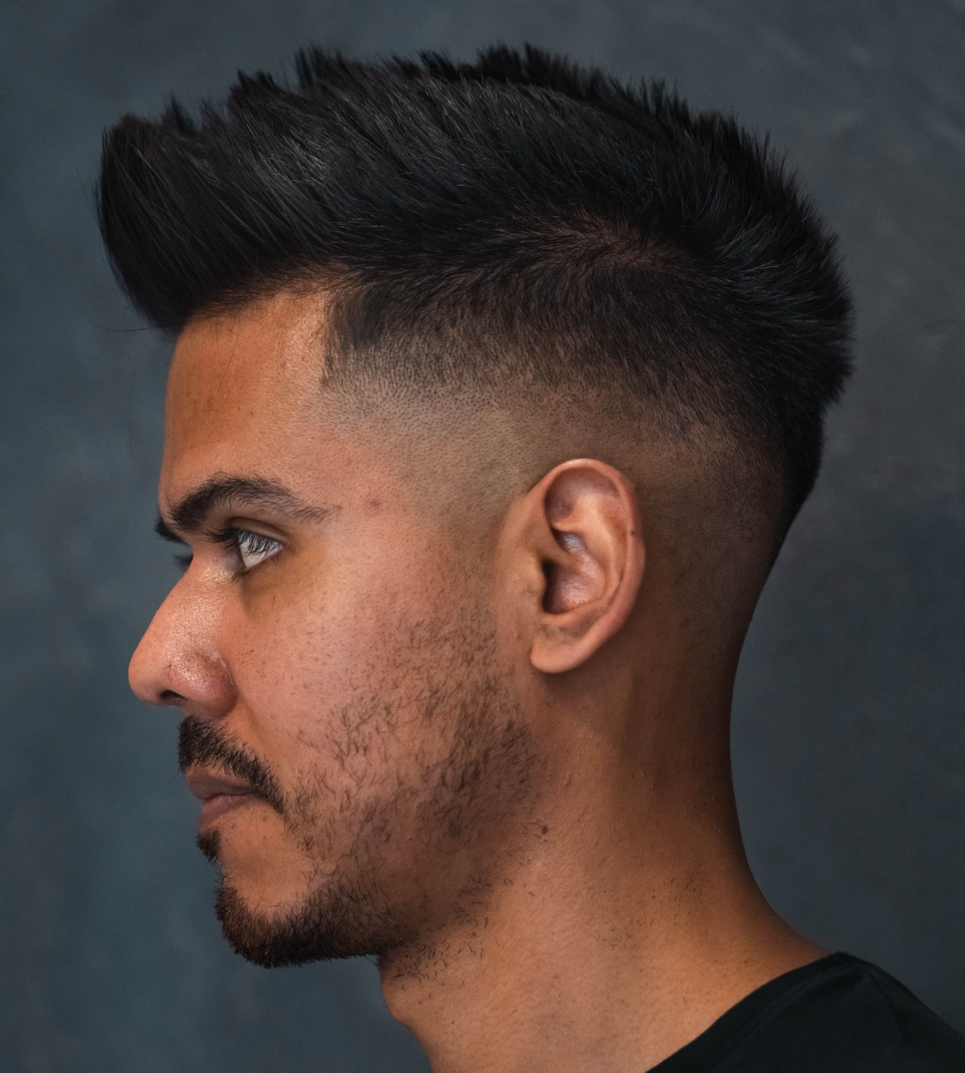 What’s great about this haircut is its simplicity and neat look. If you don’t like the spiky top, you can always go shorter without having to disrupt your entire cut. The front spiked hair is longer and strategically tapered to blend with the buzzed sides and back.
