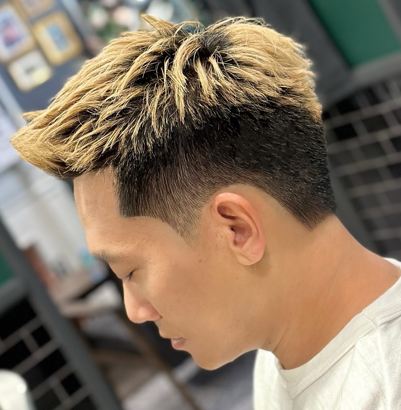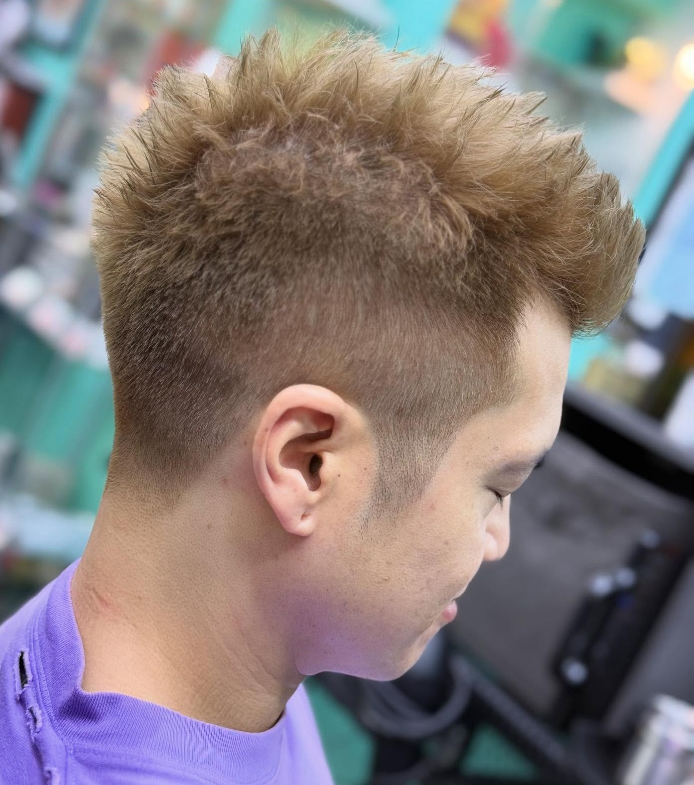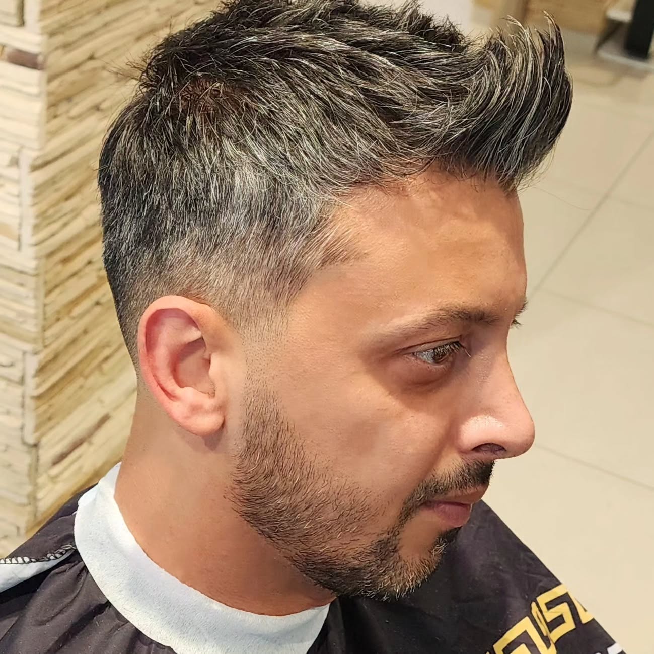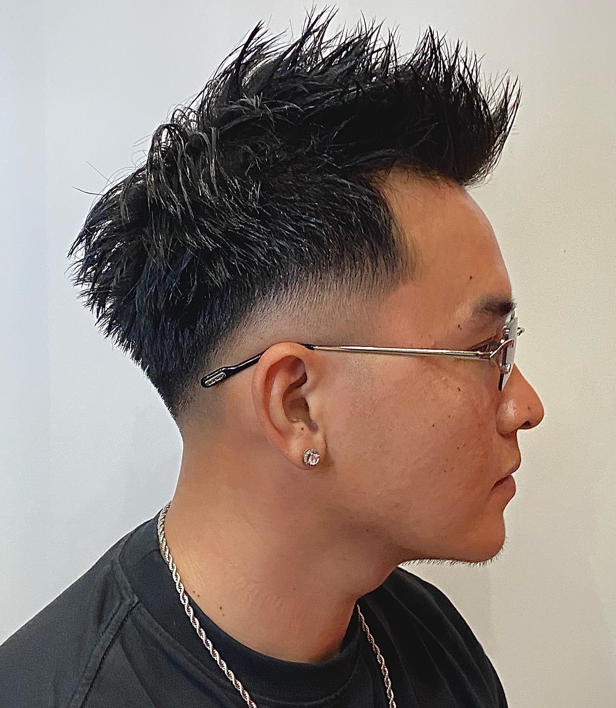 Short spikes with a blended undercut and burst fade. This style does not require much product or any commitment at all. Perfect for the on-the-go man who wants to make his look a tad spicy!