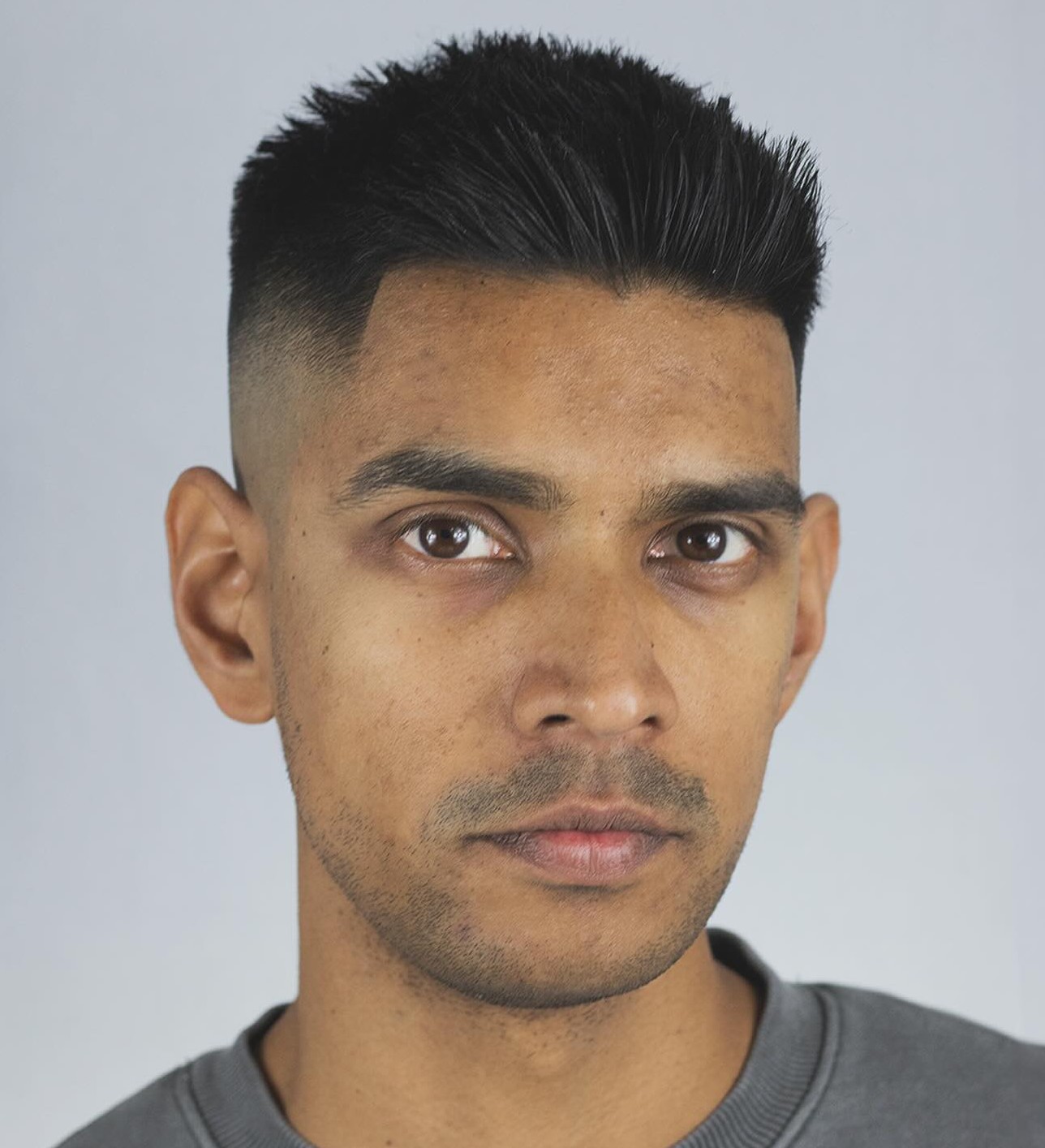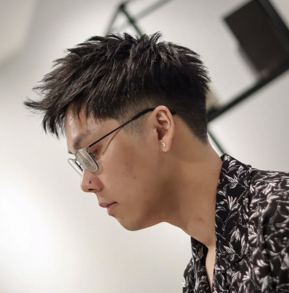 Short spikes with a blended undercut and burst fade. This style does not require much product or any commitment at all. Perfect for the on-the-go man who wants to make his look a tad spicy!