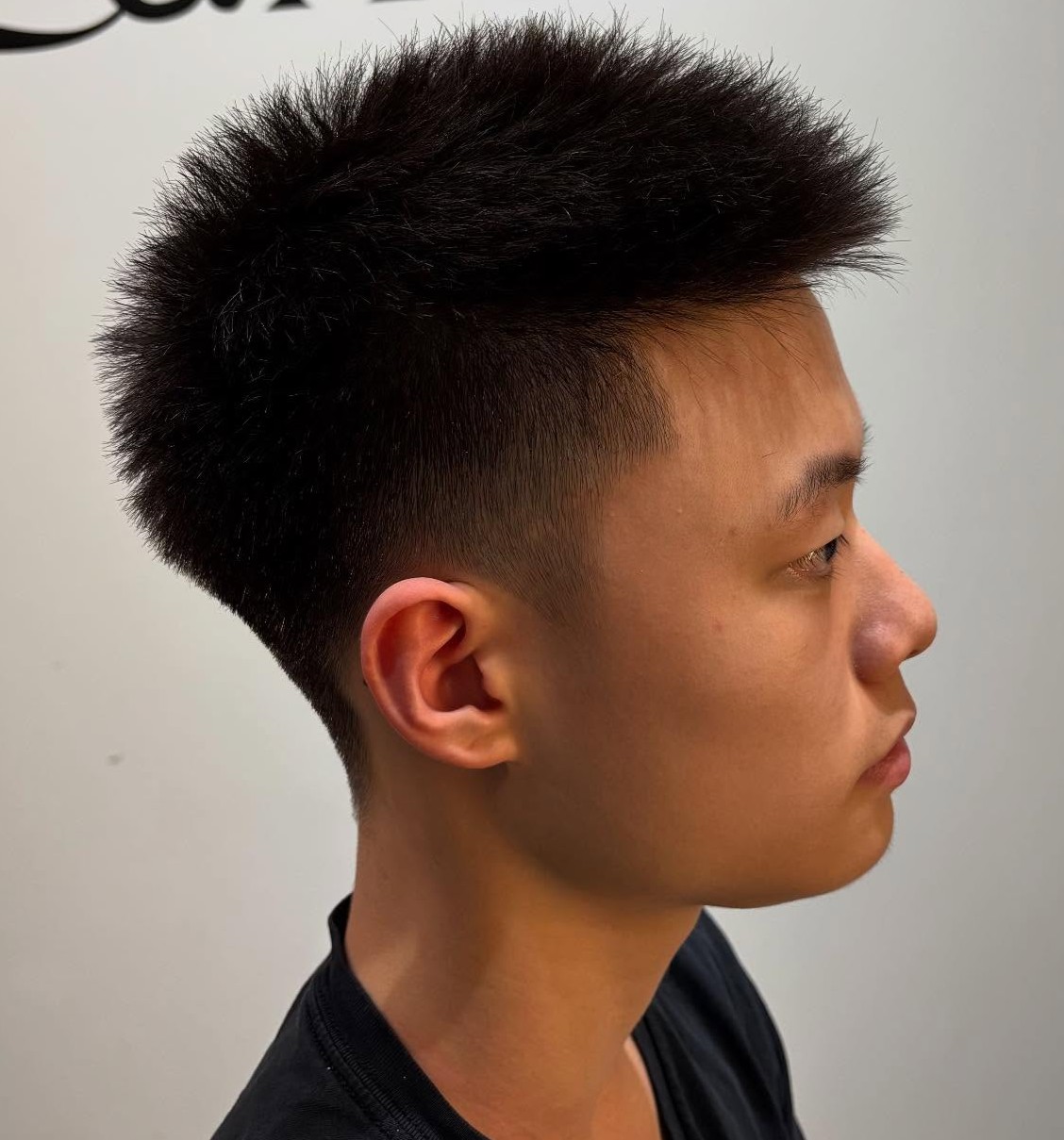 What’s great about this haircut is its simplicity and neat look. If you don’t like the spiky top, you can always go shorter without having to disrupt your entire cut. The front spiked hair is longer and strategically tapered to blend with the buzzed sides and back.