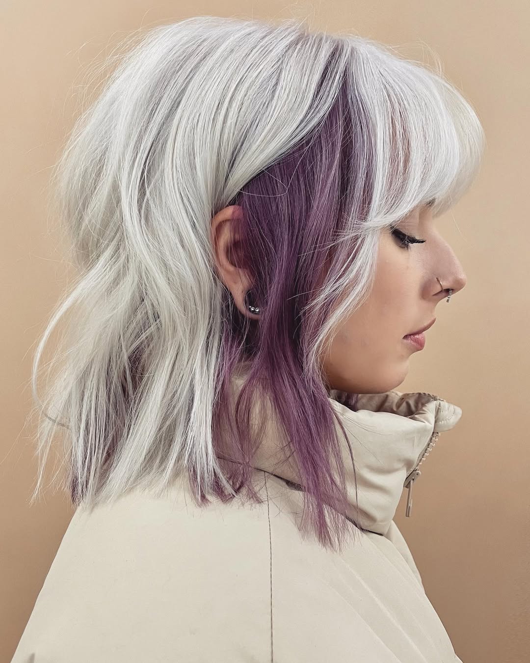 We’ve all had that Barbie with this exact hair color combo, right? C’mon, how much prettier and fiercer does it get?! Pair your platinum blonde with purple for an icy, revitalizing pop of color in your hair.
