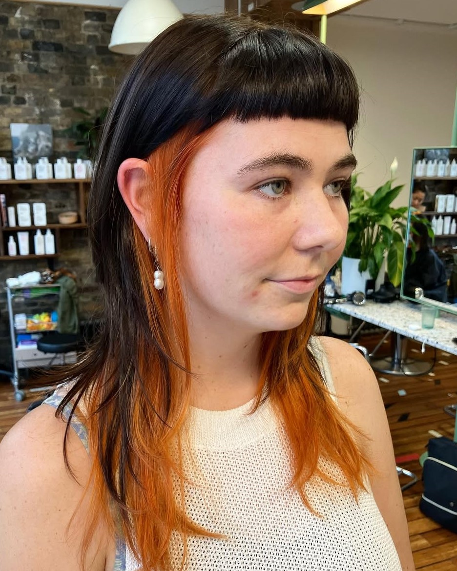 Peek-a-boos are the most prevalent form of bi-chromatic hair. The “pop” can be as loud as your stylist’s imagination wants, or can also add depth without having typical, cookie-cutter highlights. The placement of color depends on your overall goal, as well as your haircut. Essentially, the color should look like it is “peeking” or “hiding” throughout your hair, and should create a lot of movement and dimension.