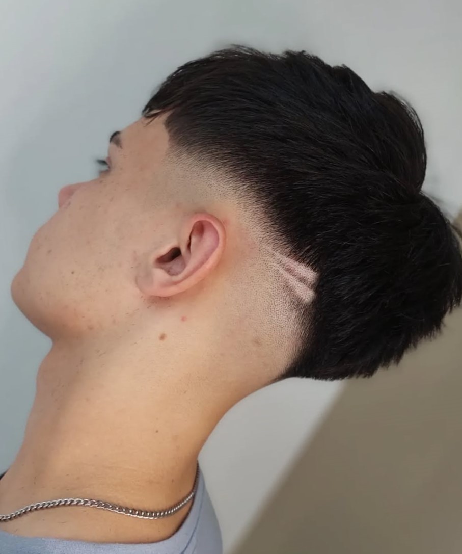 Don’t hesitate to step up your disconnected undercut with a custom hair design. The closely clipped sides and back give enough space for both simple lines and more complicated patterns.