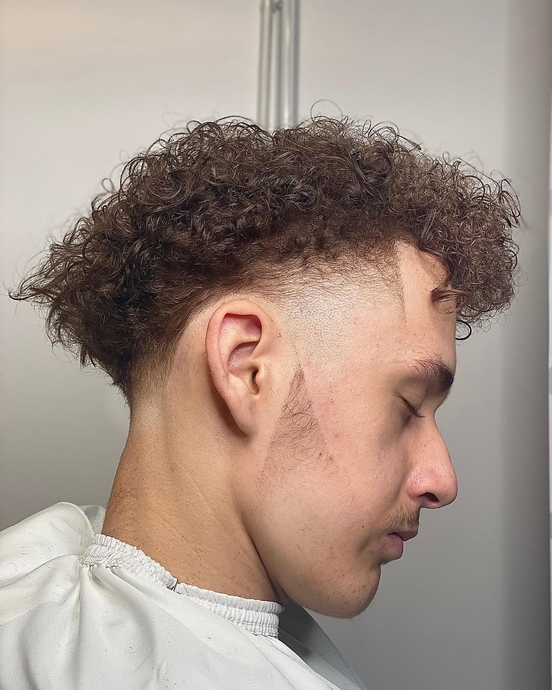 This curly undercut combines a mid taper fade and clean shaven periphery with a free-form afro style top. Add bespoke detailing with a crisp stripe etched into the front hairline. The blended and precise cut requires virtually no styling, simply wash and go!