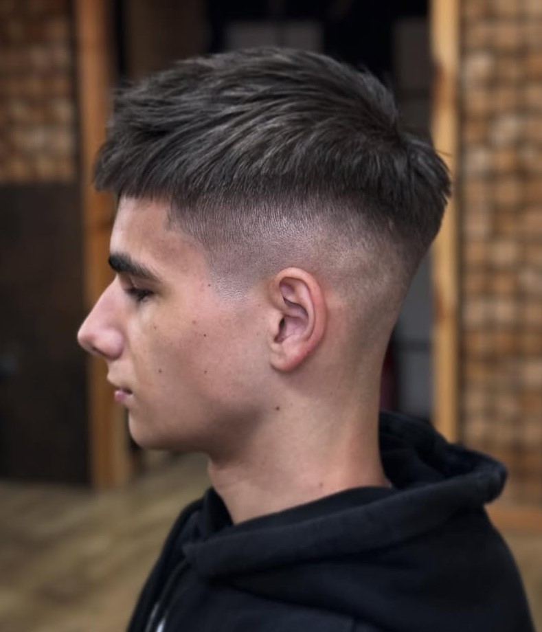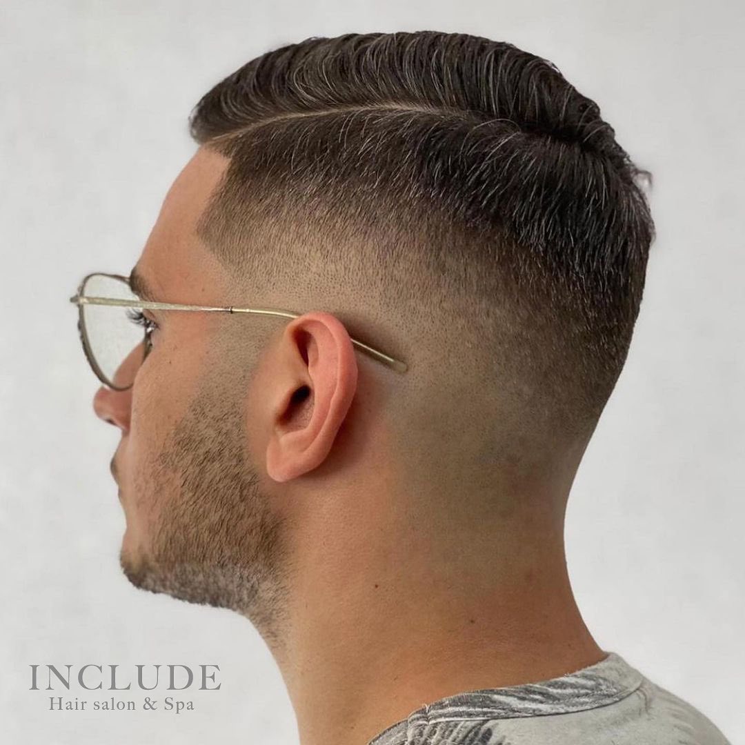Contrast a classic low fade with luxurious brushed-back lengths to creating an intriguing contradiction. For guys, there are fewer haircut options, but you can make something unique by integrating unexpected combinations. Subtle highlights through the front emphasize the contrast.