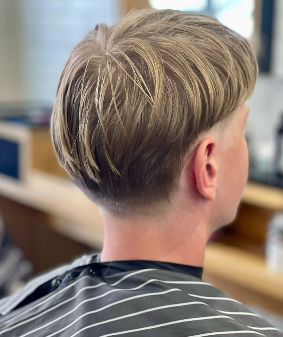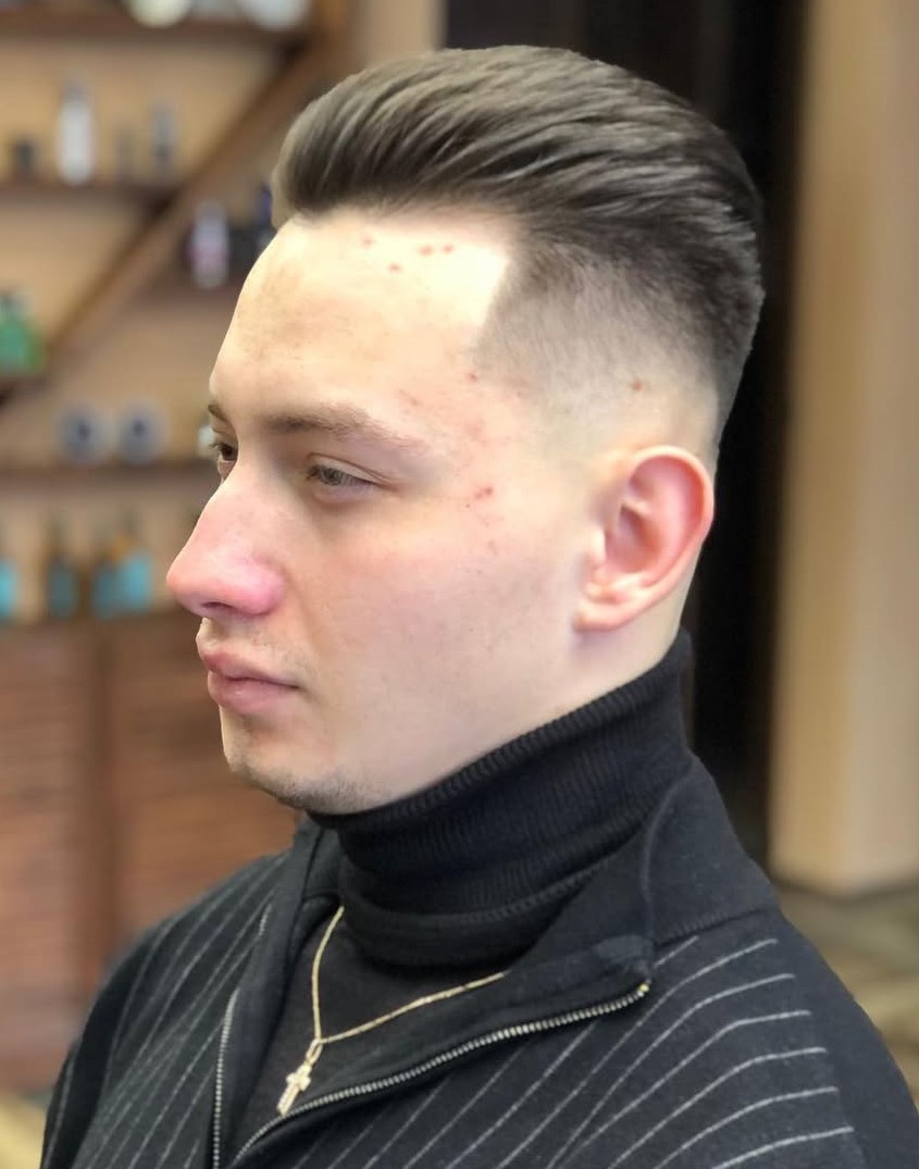 Contrast a classic low fade with luxurious brushed-back lengths to creating an intriguing contradiction. For guys, there are fewer haircut options, but you can make something unique by integrating unexpected combinations. Subtle highlights through the front emphasize the contrast.