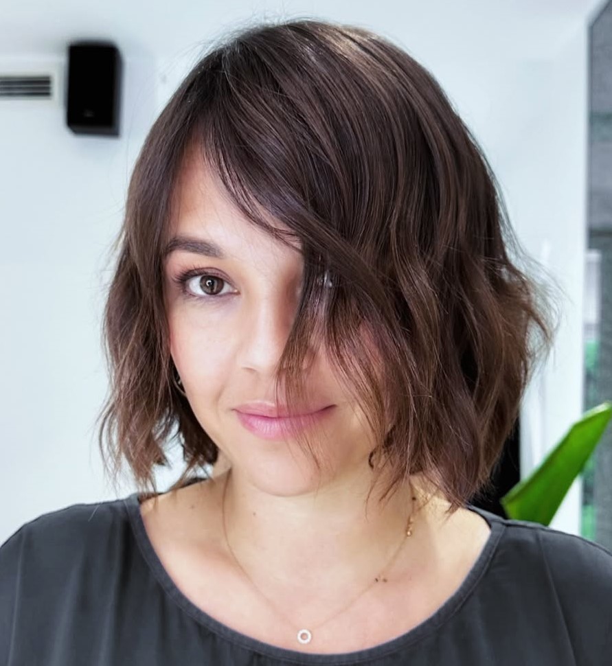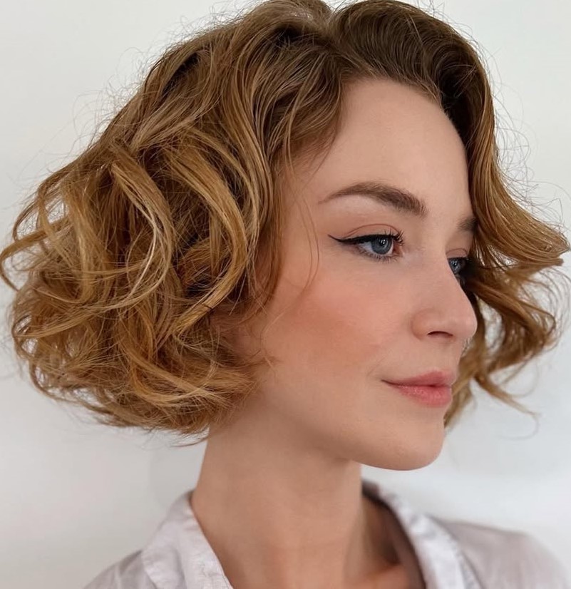 Wavy bob hairstyles are among the top current picks in women’s hair fashion. Whether you have naturally textured locks or consider adding that gorgeous beach texture to your cut, the medium length is just the ideal variant, as it keeps the curls bouncy and textured. Plus, curling short hair often takes just a few minutes. Angled, stacked, graded and A-line cuts are all in favor! Browse the most flattering ideas to choose your new look.