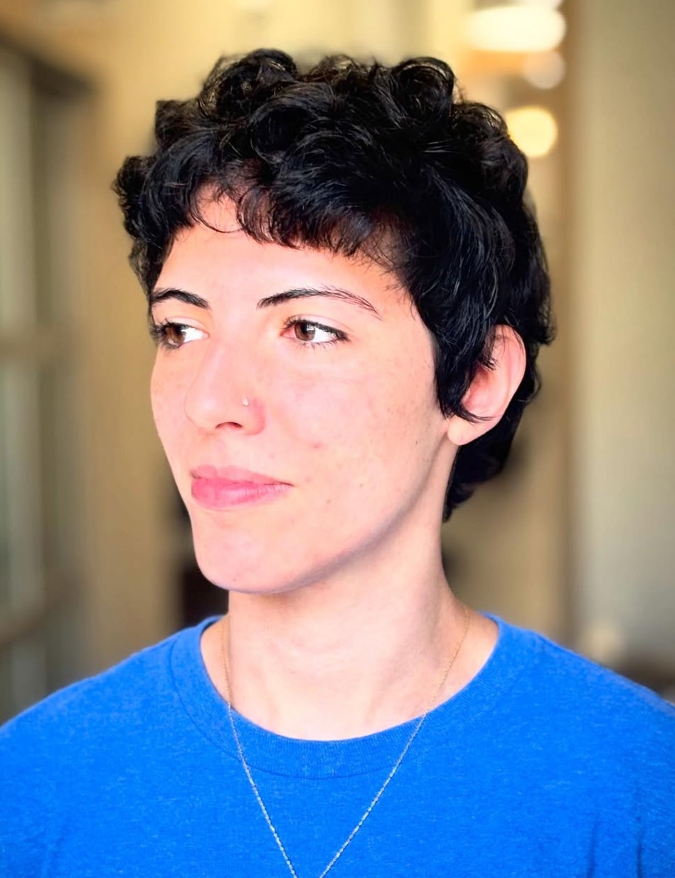 In case you want to put an edgy spin on your curly pixie hairstyle, simply add loads of texture. This lovely, messy look is all the rage!