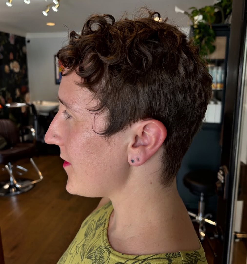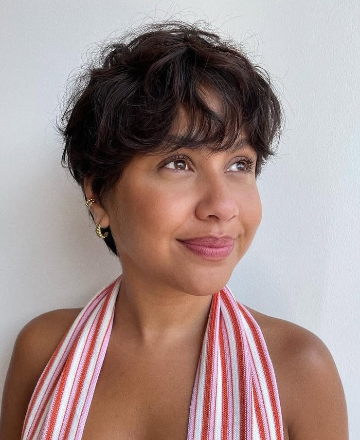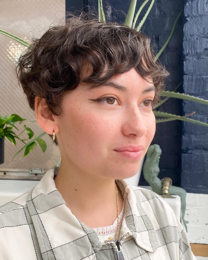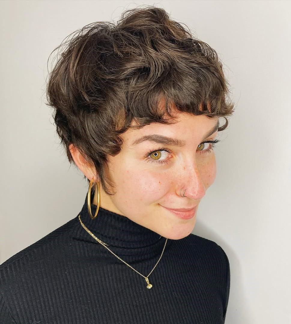 Channel a true retro vibe with this curly and cropped cut that pays homage to the ’50s and ’60s. Pixie haircuts for curly hair can still look very feminine even when the hair is quite short.