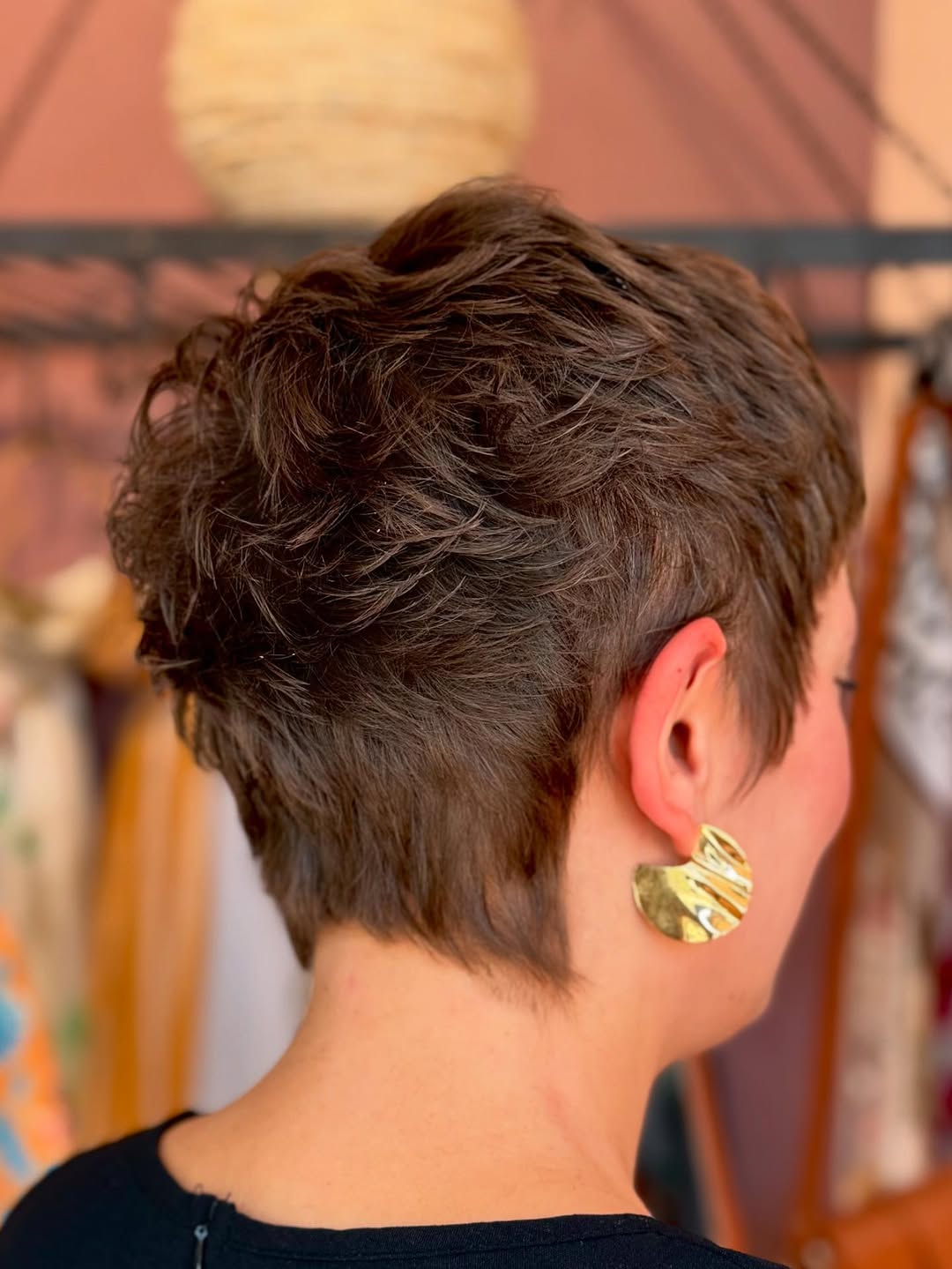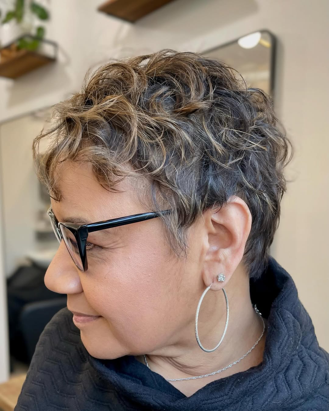 In case you want to put an edgy spin on your curly pixie hairstyle, simply add loads of texture. This lovely, messy look is all the rage!
