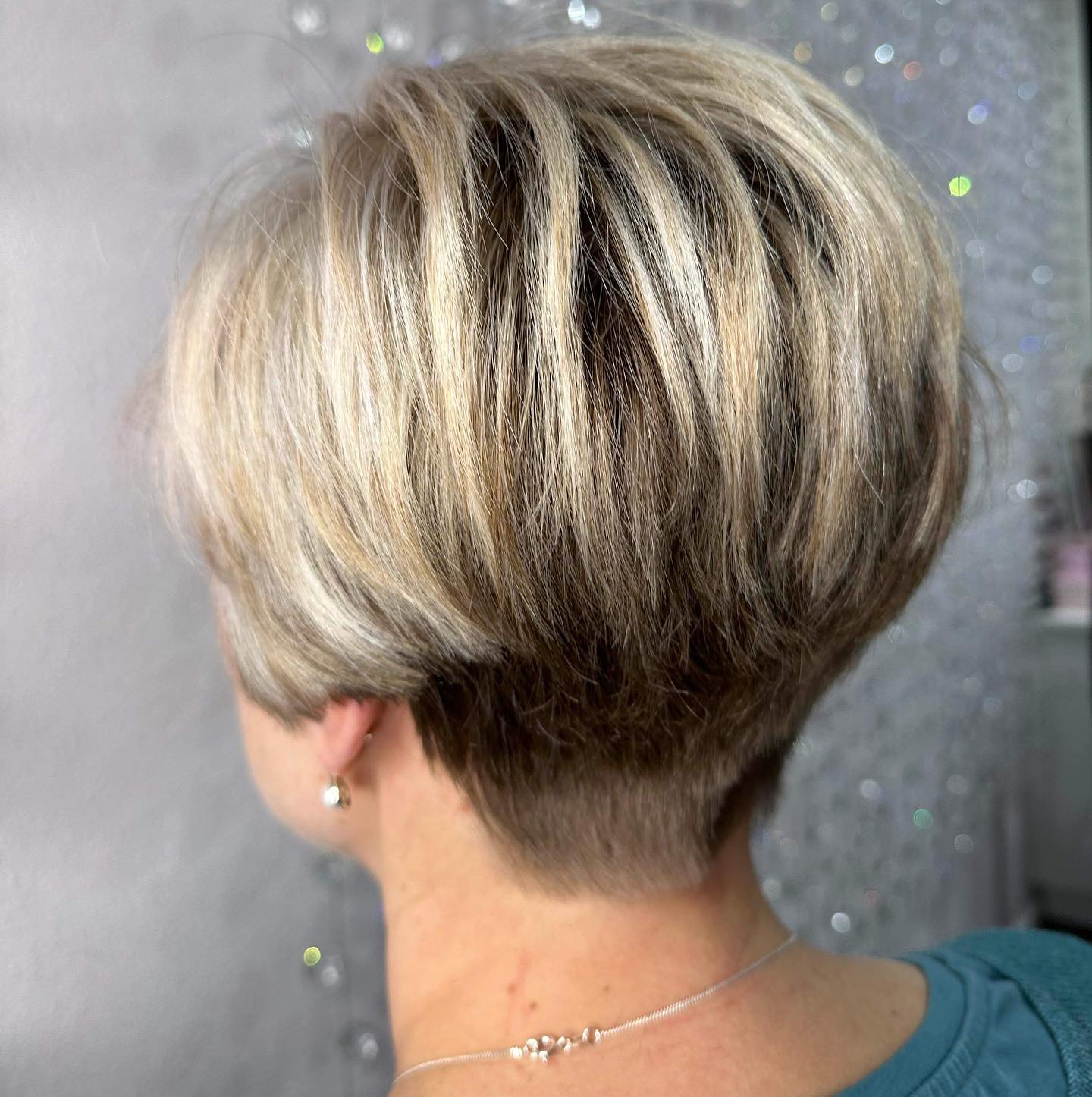 Tired of boring, simple styles for short hair? Then this stacked haircut is an excellent idea for your new, inspiring hairdo. With lots of layers and texture, your hair will appear thicker and fuller.
