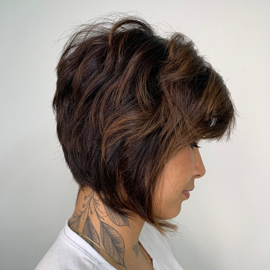 Tired of boring, simple styles for short hair? Then this stacked haircut is an excellent idea for your new, inspiring hairdo. With lots of layers and texture, your hair will appear thicker and fuller.