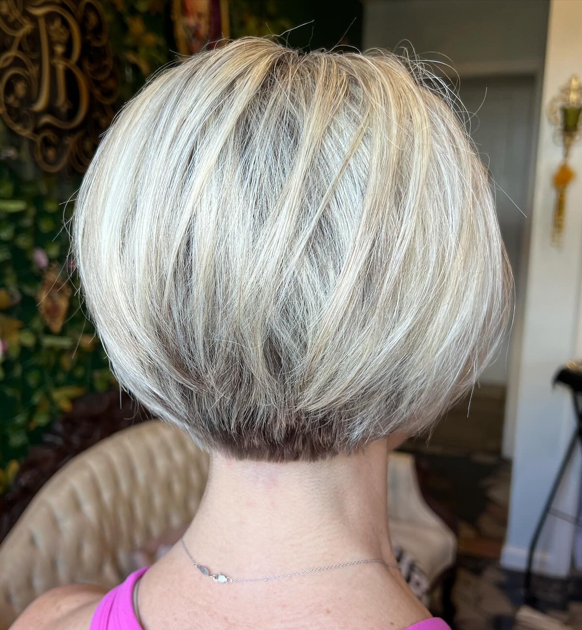 Tired of boring, simple styles for short hair? Then this stacked haircut is an excellent idea for your new, inspiring hairdo. With lots of layers and texture, your hair will appear thicker and fuller.