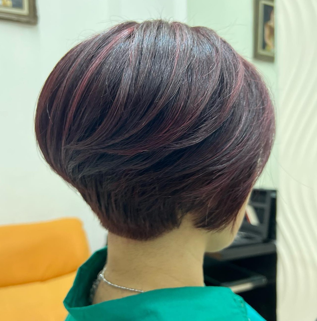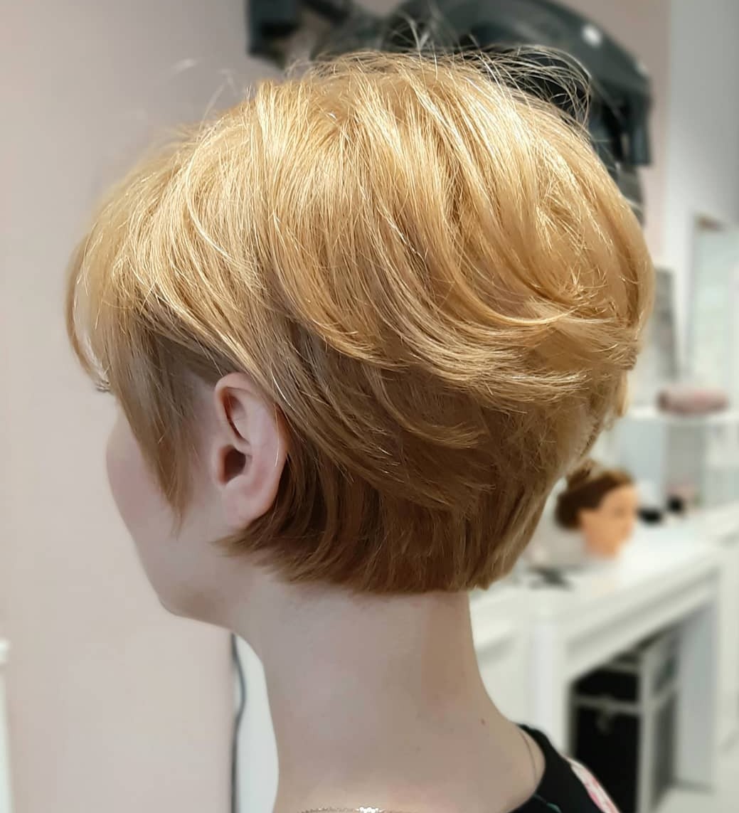 Tired of boring, simple styles for short hair? Then this stacked haircut is an excellent idea for your new, inspiring hairdo. With lots of layers and texture, your hair will appear thicker and fuller.