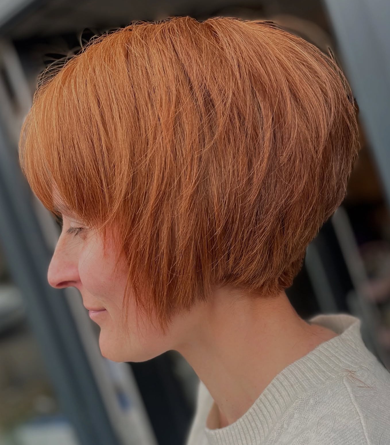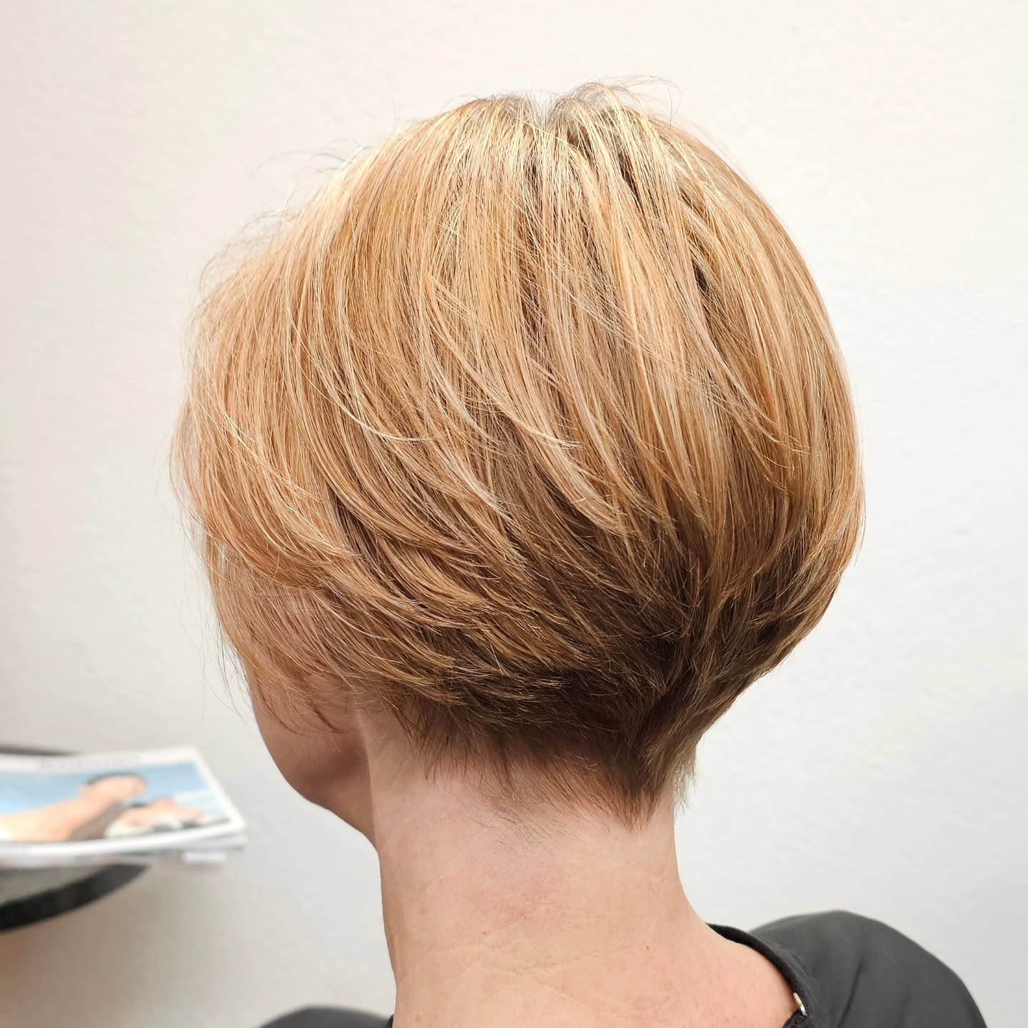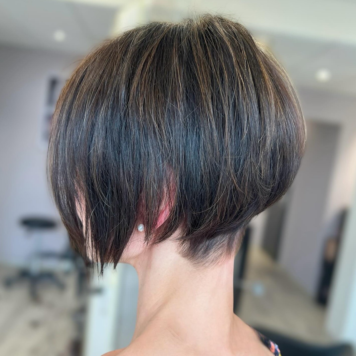 Tired of boring, simple styles for short hair? Then this stacked haircut is an excellent idea for your new, inspiring hairdo. With lots of layers and texture, your hair will appear thicker and fuller.