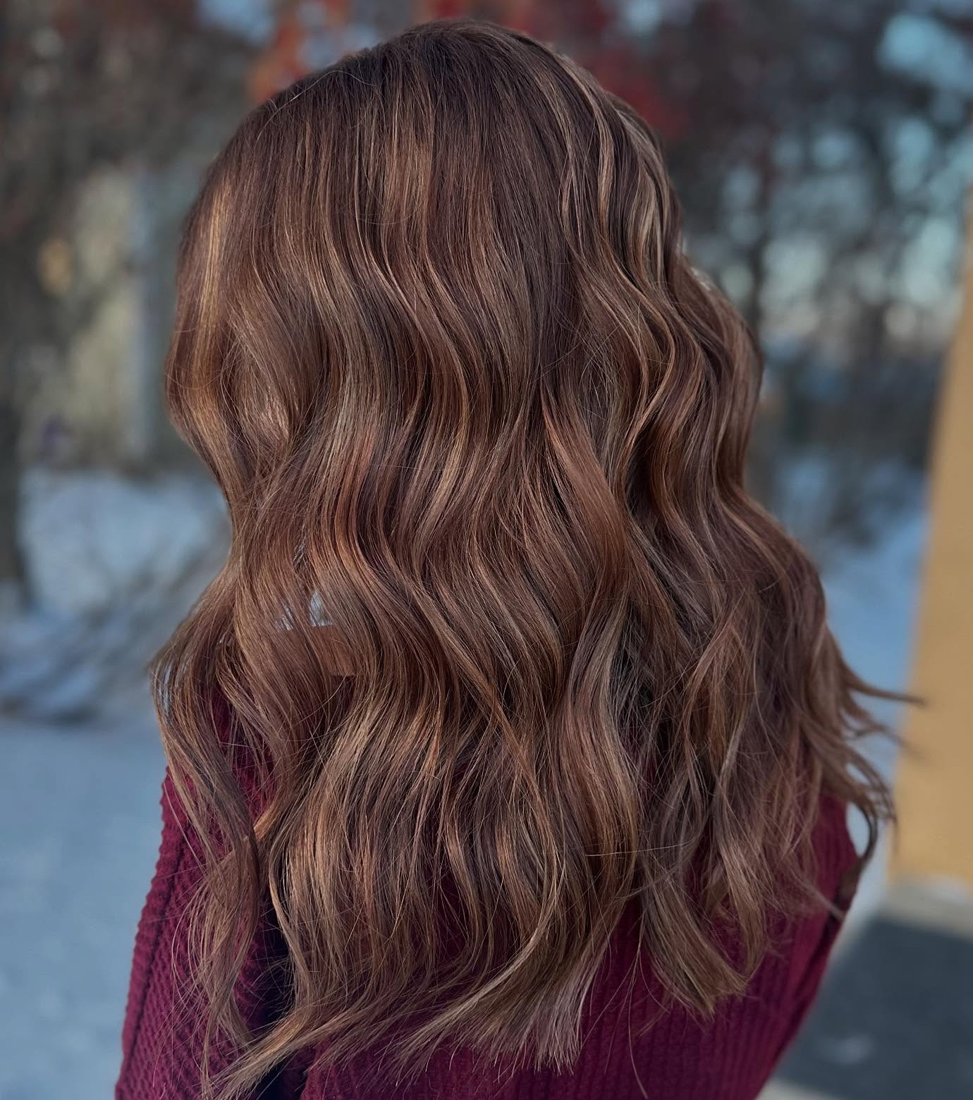 These blonde waves will bring you right into spring with the energy of their color! Make the best of the darkest time by being the brightest one in the room. Keep your length, and add two shades of highlights over a medium brown base. You can definitely bring some cheer to the wintery days of 2025.